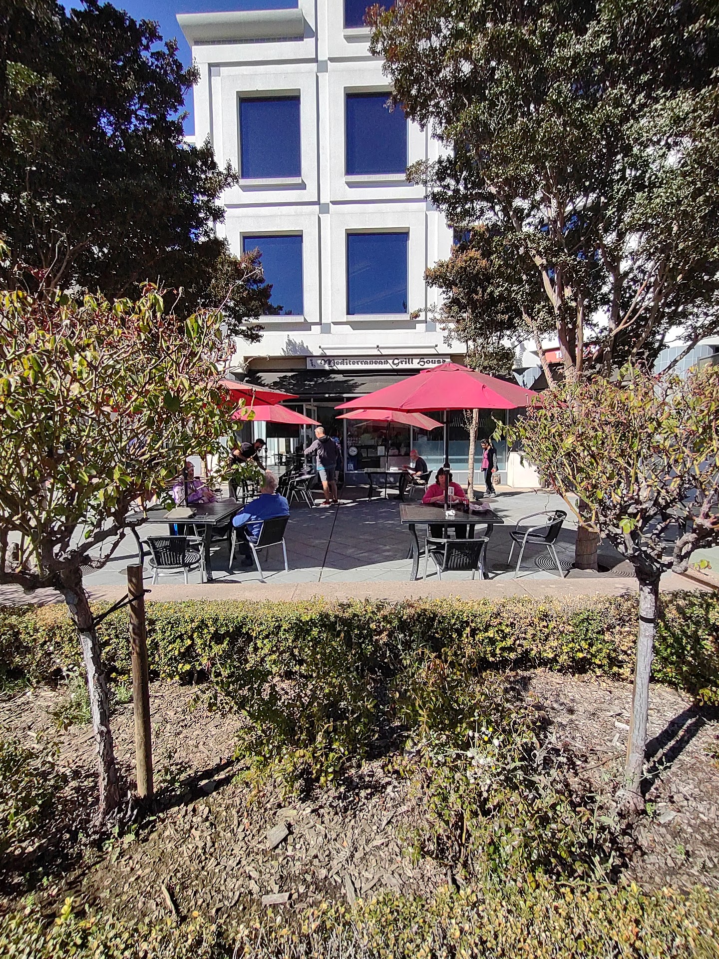 I went there for lunch around noon on a Friday. It's on Castro between Church and High School streets. There is street parking and an underground lot behind the Wells Fargo shared with St. Joseph Church. There is an order counter with a menu board above. I ordered the Lamb Kebab, medium rare, plate with Hummus and Garlic Potatoes. I was given a number stand to place at my table and waited a short time for my meal to be delivered along with 4 quarters of Pita bread and Tzatziki sauce. It's a clean table and chair interior for about 30 people. There is dining outside also.