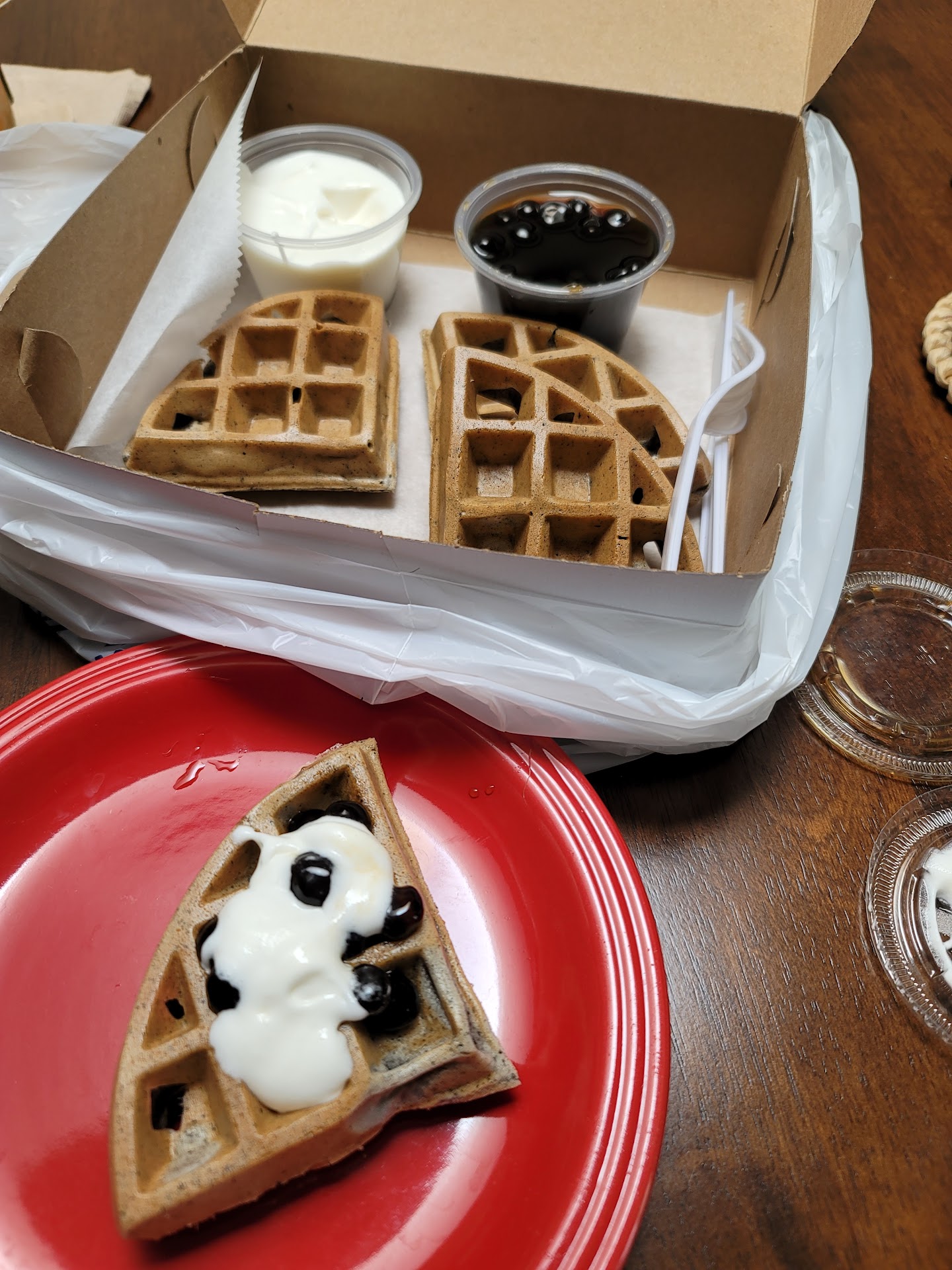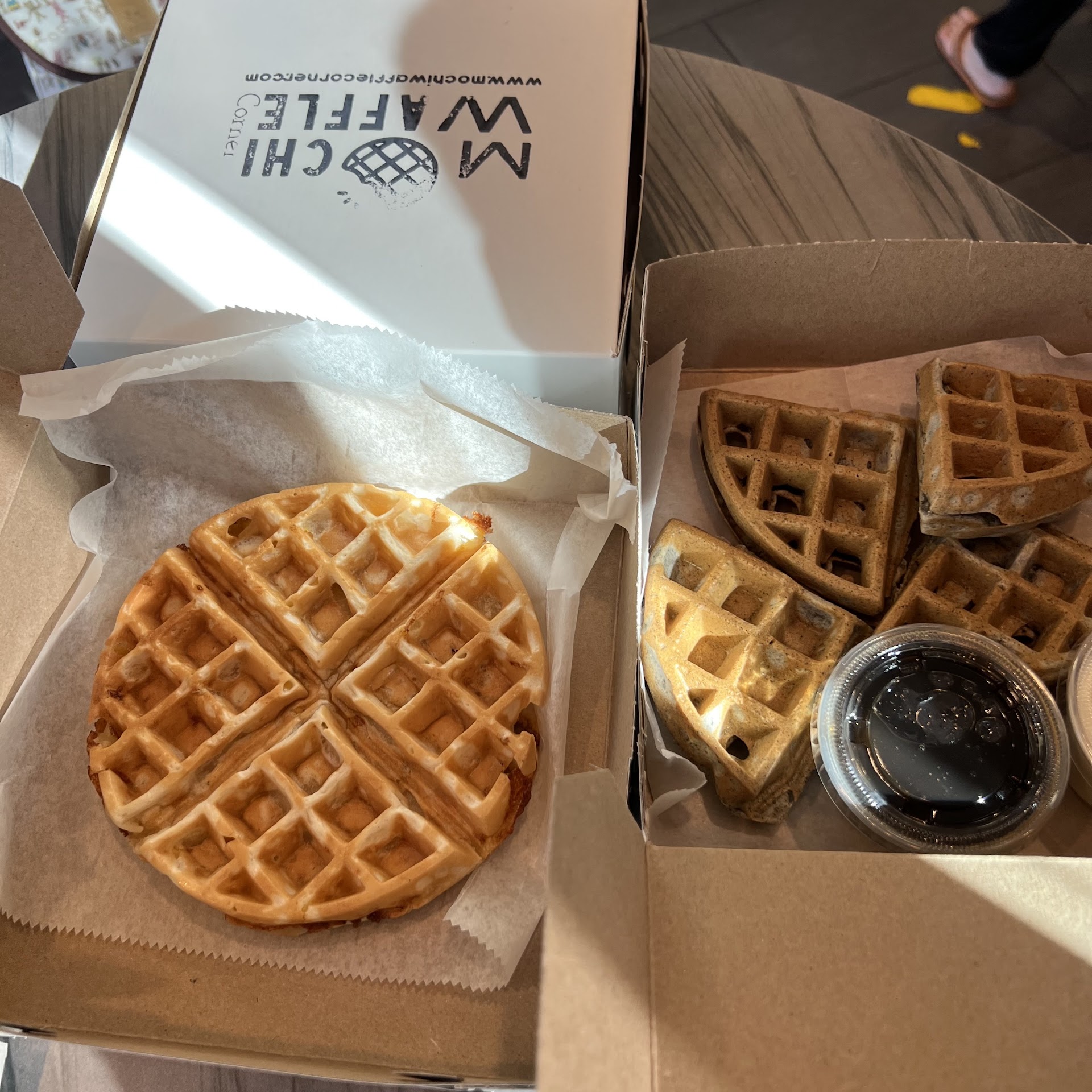 Read moreYummy!!!!! Was looking for a snack so stopped by on a Sunday afternoon. Small corner store in a small plaza! Not too busy so parking was no issue. You order on the kiosk and waffles take 10-20 minutes since they make it fresh. You'll get a text when your order is done and they also call out numbers loud enough to hear from the outside. Easy pickup window inside! There are some tables on the outside of the shop but none inside.