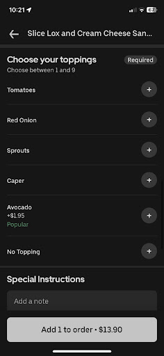 I went to pick up my Postmates order and when I asked if the lettuce and cucumber I had requested in the “special instructions” section was on it, I was told “yes, I put it this time, but next time you have to select it when you order because you didn’t pay for it.” I explained that for the lox bagel that I ordered lettuce and cucumber was not an option for an added topping. I did not appreciate that the staff member seemingly assumed that I was trying to get out of paying for the toppings. After I had explained that it wasn’t an option on the app, the staff member said that she didn’t know about the app options but I needed to make sure that I selected the toppings in the future. Again, that is not possible with the Postmates or Uber Eats app (see in...