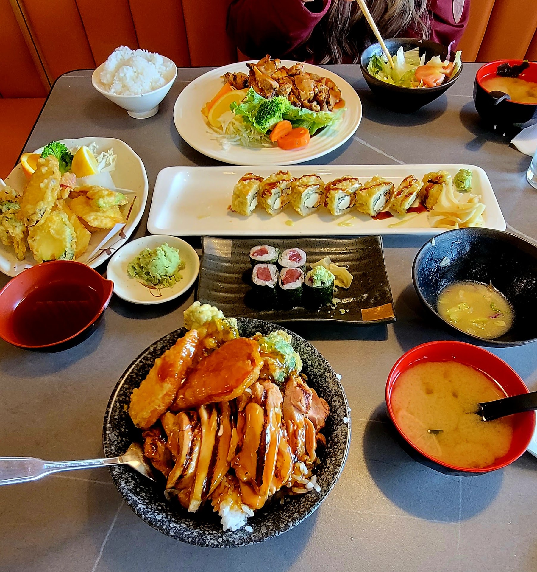 There were five of us and we ordered sushi and udon dishes. The food was good, but the server we had needs lessons in basic table/serving manners. I know these are harsh words, but I felt very uncomfortable the whole night and even now waking up with this. I should have walked out! Instead of using a tray, she carried the soup bowls with her hands, and the thumbs touched the broth. Between her trips to pick up another plate, I saw the server touched the back of her coworker's pants. Her sleeve touched another member's sushi. One sushi dish had a hair, a server used a napkin to remove the hair, when I felt uncomfortable with their manners and asked to have the dish replaced, the server brought the plate back out after bringing it to the back. The smear from the efforts to remove the hair is still visible on the side! I asked for a soy plate, our server brought three plates with her thumb pressed on the center of the top plate, then she used her one hand with fingers all over the plates to move them around the table. Another member was uncomfortable how the server leaned over her. Too many other issues with the server!