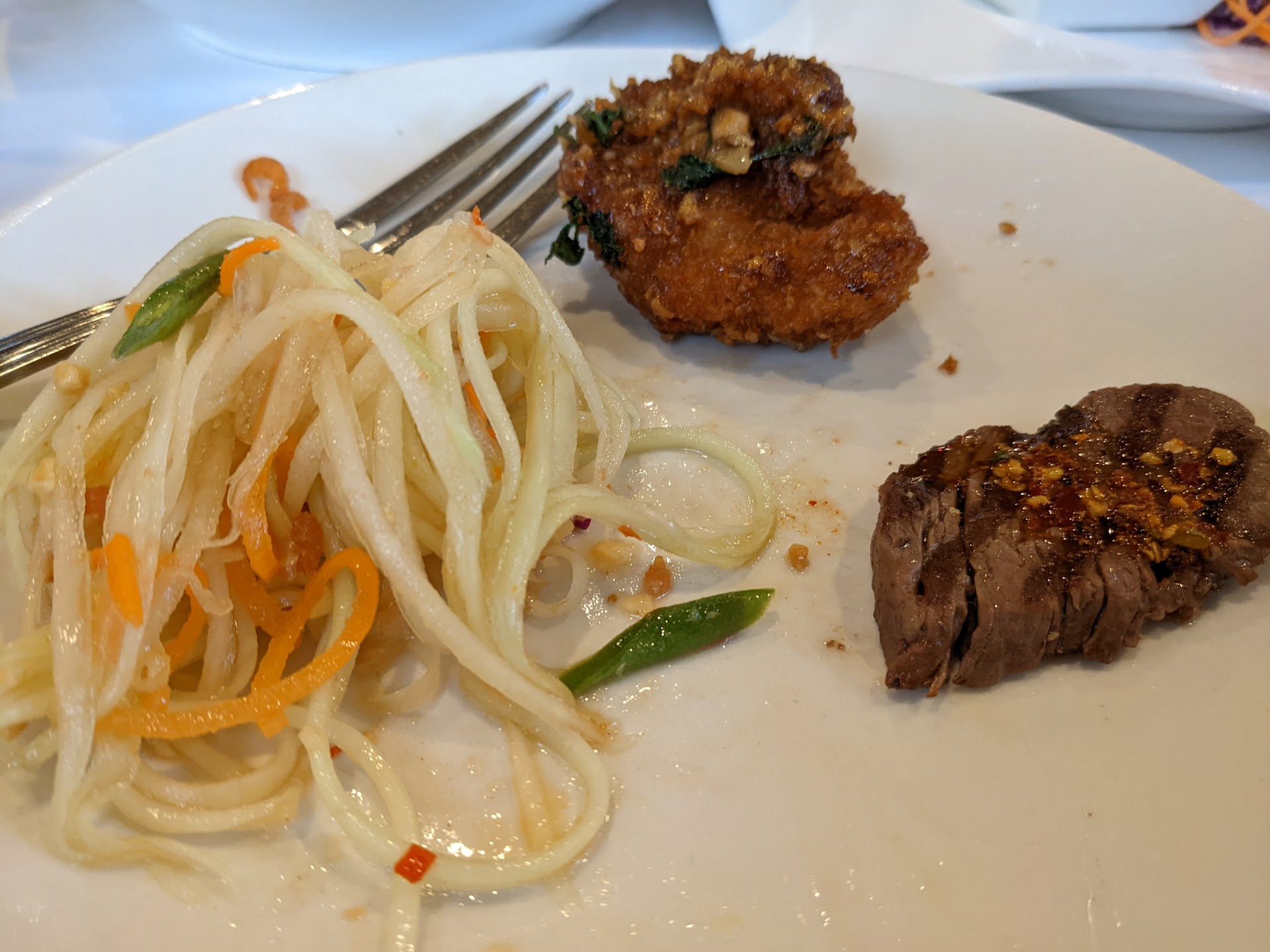 Now, if you are not a meat eater they have a few salad choices: just to name a couple they had papaya salad, lard salad and grilled eggplant salad OMG! One last tip: I’m sure you can bring your kids here but looks like this place is popular with...