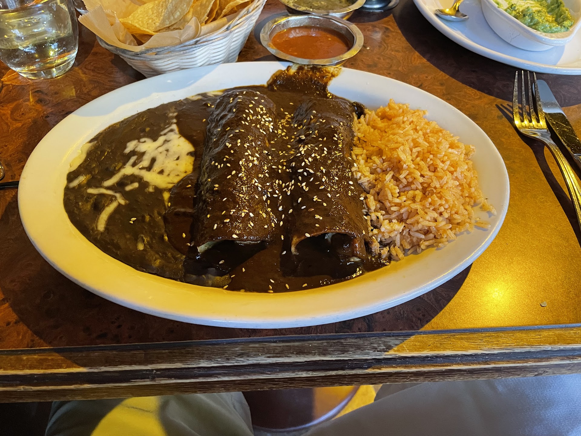The GOOD: excellent salsas- a bit spicy but very flavorful. nice restaurant space good for large parties The Average: guacamole, beans The BAD: -Chips-oily -Rice - no flavor -Food - overcooked chicken in all 3 dishes - mole enchilada, guajillo enchilada, and average enchilada sauces [the guajillo sauce looked and tasted like Kraft mac and cheese sauce-not joking] - the waiter said they were 'authentic/traditional recipes' -Management/service- could care less if you were satisfied with your dish despite asking 'how is your meal?' -Prices - overpriced for the quality of the meal. They even have an $8 charge to share your meal ---seriously?? The waiter said he would remove it if we wanted to share as we ordered wine and $14 guacamole appetizer! We opted to just get our own orders but I should not have ignored the red flag about the type of management here!
