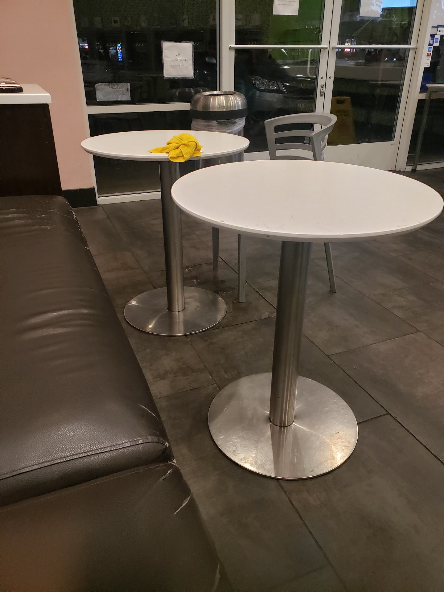 Awful experience. Went in with my boyfriend at around 8pm on Friday 12/6/2019. The place was a complete mess and there were no employees to be seen. Floors were dirty, trash cans were overflowing, and the toppings area was disgusting. My boyfriend needed to use the bathroom and needed a key. He had to almost go behind the counter to get the attention of the two employees sitting in the back, as not even yelling got their attention. The employees were playing music or watching something on their phones in the back room. When we did get their attention, a woman walked out, not in any sort of uniform (she had a jacket on so maybe the uniform was under that I don't know). She didn't say hello, just stared at us. We asked for the restroom key, and she started looking for it and seemed to not know where it was. She went back into the back room without saying a word. We left without getting anything and without my boyfriend being able to use the restroom. The seating area was so gross I don't think I wanted to eat anything...