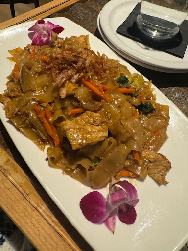 We had Wagyu Pad Kee Mao which was incredible. Hadnāt ever had that. We had shrimp and chicken pad thai which was excellent. The shrimp were huge and fresh. The chicken was organic meat.
