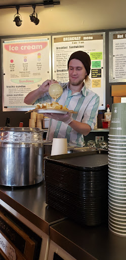 Read moreSo anyway we come to this place thinking that it would be a good place to get some food and drinks.We order some nachos and a taco salad.Both were way to spicy for the kids. I go out to get a crêpe from the crêperie for the table to eat because the food there was super spicy and bad.After I get this amazing chocolate and raspberry Crêpe which was way better than the food at tracks.I bring the crêpe into tracks so we would not starve to death because the food at this place sucked.This guy comes over and says “I’m sorry but no crêpes on tracks property” then we tried to explain that we had eaten here and spent over $60 but then he said “ I know you guys ate here” as he was pointing to my mom and my sister. He did not however point to me because at that point I was eating part of the crêpe so he kicked us out for eating a crêpe that tasted way better than the food they serve.I will never come here again and I hope you guys take this...