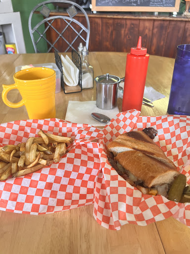 Read moreDecided to take a road trip and stopped here to eat. It was a cute little roadside cafe. I have very mixed reviews on this. I know this is a small business and definitely not fast food. We appreciated that going in. We looked forward to the small town homemade experience. However, it really took a long time. The onion rings we ordered as an appetizer were overcooked, very crusty and greasy. Not good at all. But the fried pickles we ordered were absolutely AMAZING! And they gave you so many! They were the best part of the meal. I ordered the small smothered burrito, which was also great and a very generous size. Now the burgers on the other hand, while tasty, were on the small side.