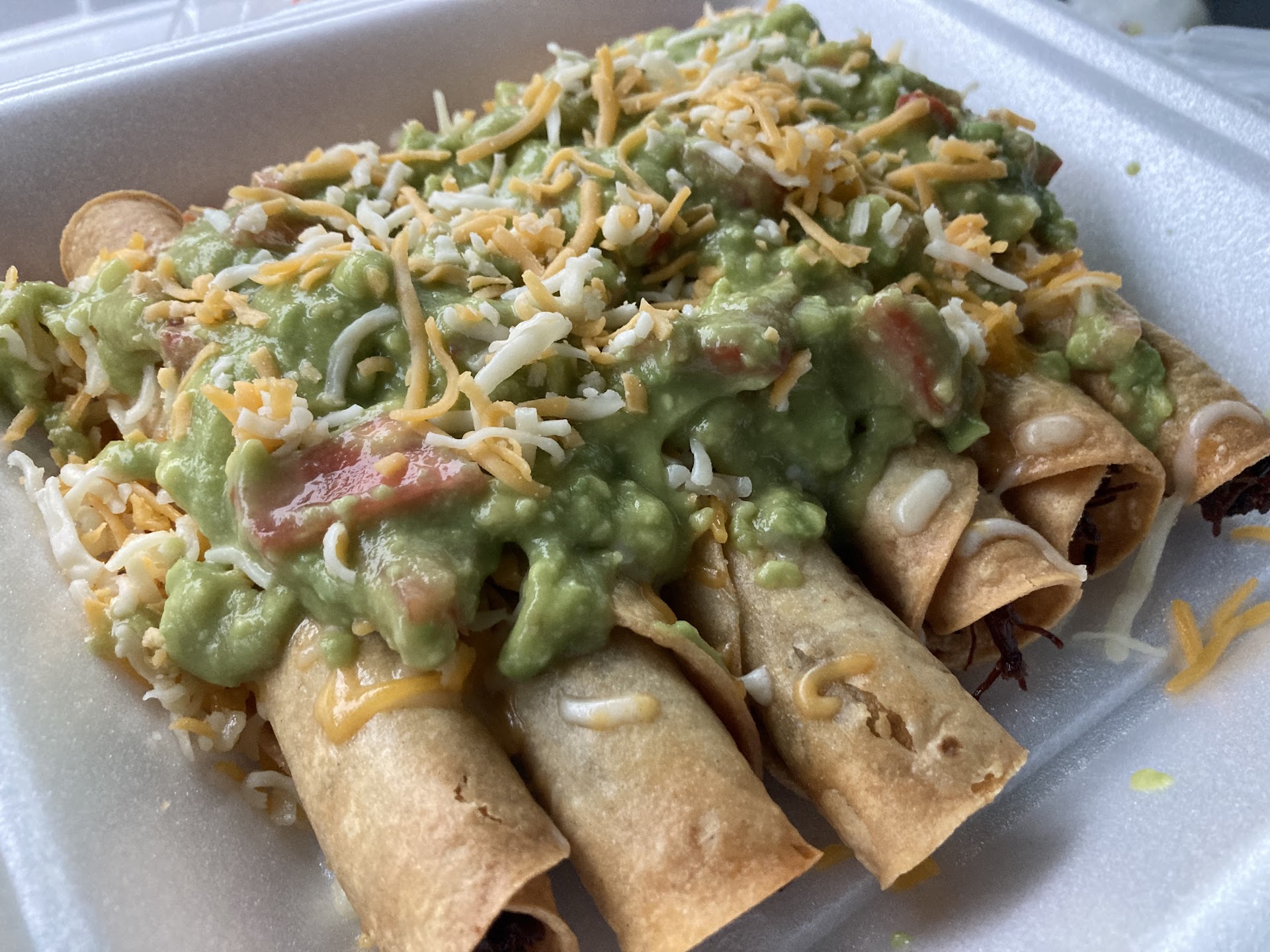 The rolled tacos are fantastic and reminded me of my childhood. Epic salsa bar and free pickled carrots, onions, and jalapeƱos.
