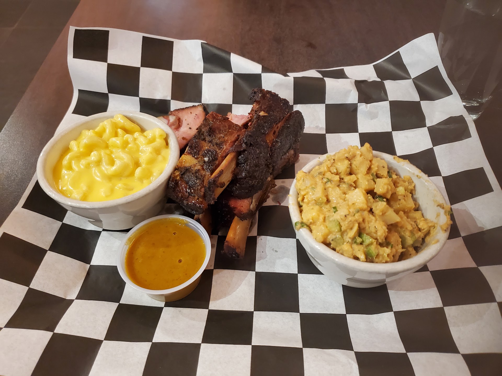 Read moreI went to Gabriel's at 6:30pm on a Saturday. Immediately when I walked in, they asked if I was there for a pickup order. When I said I wanted to dine in, they said they were out of food. I thought they were joking but the chef called out that they only had a pound of ribs left. After deciding I would stay for the ribs, I had a ribs plate with mac and cheese, potato salad, and carolina mustard. The ribs plate had 1 lb of ribs which consisted of 5 individual ribs with a large amount of meat per piece. They might've been the best ribs I've ever had. The mustard made them next level but they were great by themselves and very tender. The mac and cheese was very creamy and the flavor was good. The potato salad was unique because of the spices used and the small cut of the potatoes. Much better than potato salad that I've had at other locations, in my opinion. The service was great but I was also the only person dining in. There were a few people that came in to pick up previously placed orders. I would've loved to try the brisket, but the ribs were delicious and I would recommend them! They sell out early for a reason! Gabriel's is the place to go, but make sure you go early enough...