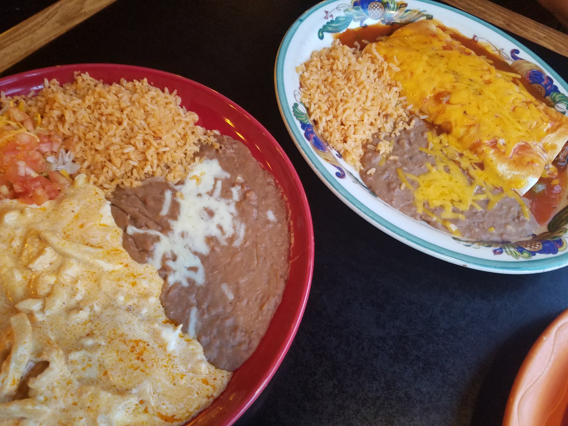 The food. My biggest complaint is the food. Every single dish I tasted lacked salt. The salsa had no spice at all and just tasted like watery tomatoes and cilantro. The queso was fine, even thought it came with the breadcrumbs we asked to keep off (who puts breadcrumbs on queso anyways?) For our main dishes we got the two enchilada and one taco plate, and the three taco plate. The tacos were almost inedible to me because there was no spice at all in the beef, let alone salt. It was flavorless. I barely ate 2 of the 3 tacos. The beef in the enchilada combo plate was just as flavorless and the enchilada sauce was literally just tomato sauce. The rice had no seasoning or flavor at all. It was just bland rice. The refried beans were fine. Still could have used salt, but they were decent. The best thing on the plate of either dish. The entire meal was just flavorless and incredibly dissapointing. This could barely be called Mexican food.