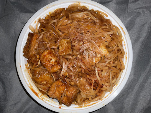 The pad Thai itself was quite good. Some of the noodles are a bit clumped together, but that could have been just due to travel time. They use an ample amount of tofu, not too little or too much. Most of the pieces were tasty and flavorful, but a few were a bit tough. Their sauce has a slight red hue to it (similar to Thai and Noodle Outlet). But, I prefer this sauce since it's not overpoweringly sweet. Nice crunch from sprouts.Would have liked a few more peanuts or a stronger nutty flavor. Still, very good, and they read my note saying no green onions. Portion was ample, more than enough for a meal or a meal for a hungry person.