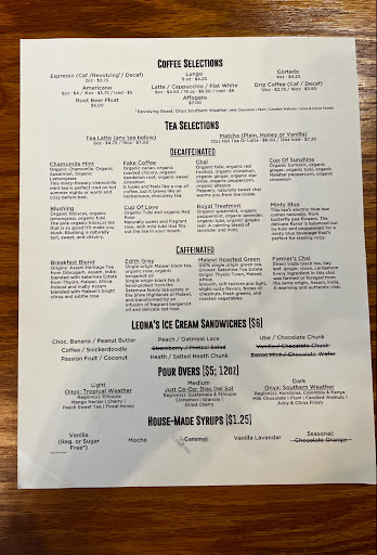 This is not the type of coffee shop that has “specialty lattes” or fun seasonal drinks. I was disappointed by this at first but they have your normal coffee and tea selections to choose from. My step dad had their dark roast and said it was delicious, he would even like to get beans next time to take home! I personally had the Fake Coffee tea latte. It was absolutely delicious!! I added honey and it was perfectly sweet.