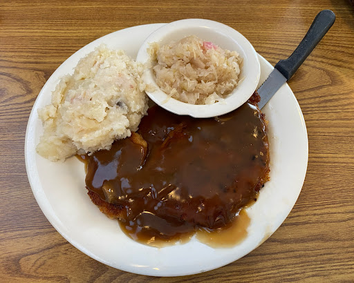 Outdated, far from authentic and under seasoned Wiener Schnitzel is traditionally being served with fries, a side salad and a wedge of lemon on the meat and NOT with either sauerkraut, red cabbage or pan fries. American fries are traditionally called FRENCH FRIES. No brown gravy available at all, unlike every Good German restaurant keeps on hand, because Germans love their gravy, or sauce as we call it The remainder of the menu is about as mediocre as you'd expect at any fast food joint Schnitzel in 2 different variations and Bratwurst is the ONLY German type food on this menu