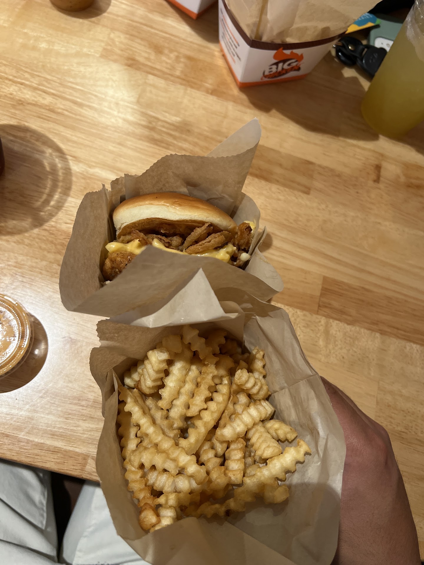 I am slowly trying their food. They have a new sauce that is similar to CFA's, only milder. Personally, I like it spicier, but it was still decent. The food was a bit slow coming out, but it was evening AND above all, all 3xs, it was FRESH AND HOT. I have not seen that often from fast food over the last 20 years. Impressive. They must have relatively short times on their fries to have that. And the several sandwiches that I have had were pretty decent.