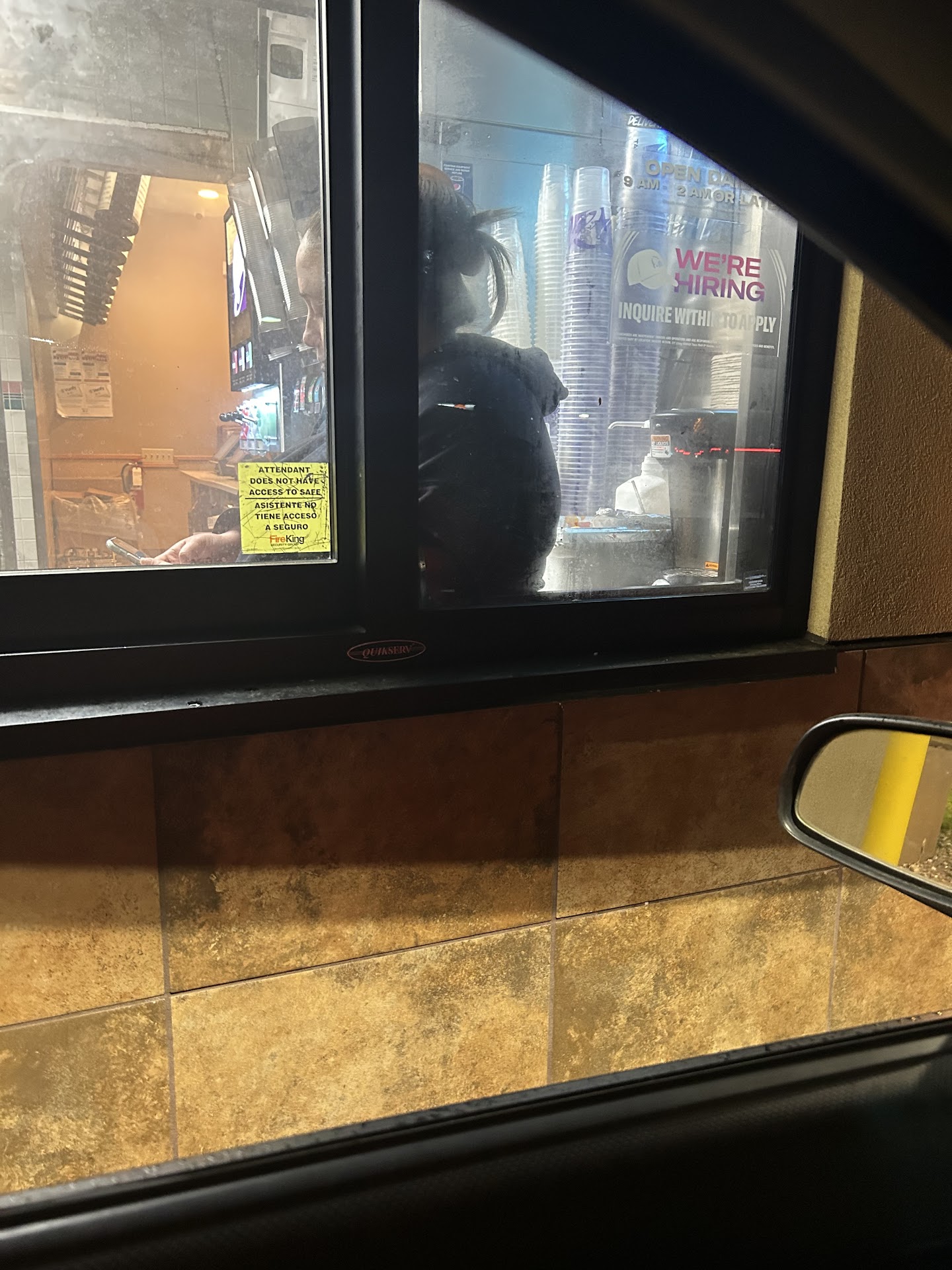 I wish that the staff would only serve food that they would be cool with paying for and eating themselves. The new chicken nuggets, although delicious, were tiny 1/2” pieces that looked like the bottom of the bag. For $7 I expected to get more than some tiny scraps. These pieces were a half an inch! Tiny! The burritos and tacos are much smaller than the other locations. Last time we ordered some bean and cheese burritos and a beefy five layer, and they were so small they looked like mini versions. The last visit was enough to where we won’t be back at this location. We spent over $40 on food for the two of us, knowing we’d have a few leftovers. All the food was so ridiculously mini sized that we had nothing left. A regular priced burrito shouldn’t be 3 bites. A steak chalupa supreme should have more than 4 small pieces of meat in it. With cheese and lettuce, it only filled the shell halfway up. And the chalupa shell was soft and fluffy and cold! Too lazy to fry it!! My husband got three crispy beef tacos, they were so empty the shell was closed flat upon itself. We couldn’t even get a full sized drink. My Baja blast came filled a smidge over halfway full!! How rude! My husband asked why they only filled it halfway and their sorry excuse was that it shrinks after it’s filled? They refused to fill it up full! They are lucky I wasn’t there because I won’t put up with that.