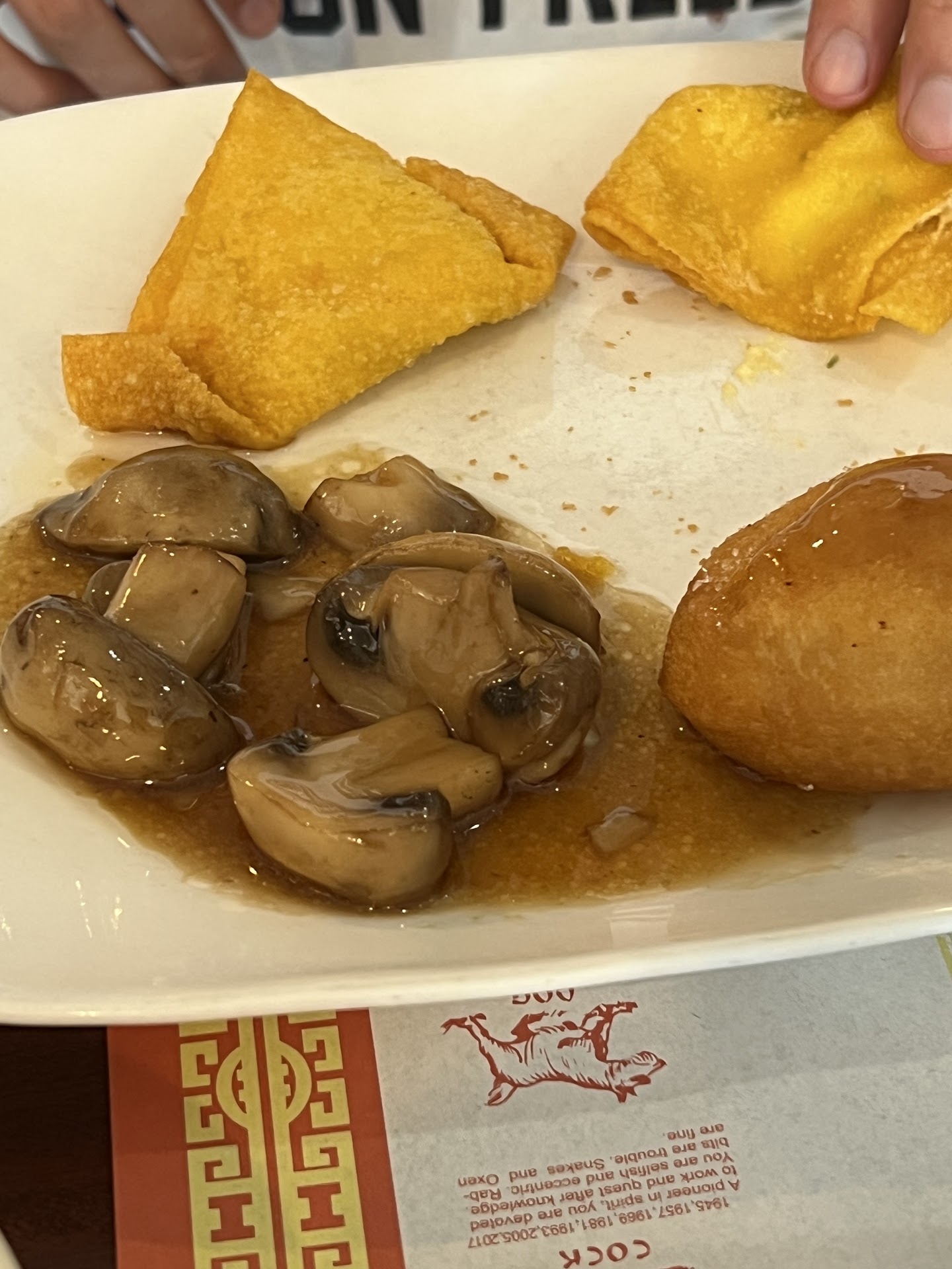 The food was hot and fresh. Egg rolls, spring rolls, crab Rangoon and chicken skewers were all delicious. I tried all three soups, too! Hot and sour was nice but didn’t have any tofu or meat. It was mostly mushrooms and wood ear fungus. It was good but not exceptional. The wonton soup was the best. The broth was tasty and there were nice large wontons (with meat inside — beef I think). Egg drop was a little too cornstarchy for me. All were piping hot which is usually not the case at all buffet.
