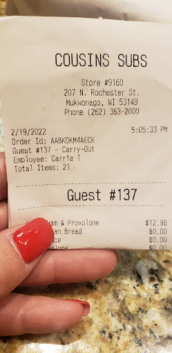 Read moreJust a warning for those who care, employees at this Cousins Subs in Mukwonago don’t take any COVID-19 safety precautions which are recommended by the DHS, CDC, OSHA and the WRA. There are 5-6 employees working side by side in the small kitchen/front counter area, none are wearing face masks. There is 1 plexiglass partition between the cashier and customer when you order, but when you pick up your bag from the counter they are speaking to you, a foot away, without a mask and handing you your food. There were also at least 5 other customers waiting in the small dining area for their orders, not enough room to keep 6 feet apart and I was literally the only person wearing a face mask out of the 12 people in a small room. I should have turned around and walked out immediately. I just can’t believe that the employees weren’t all wearing masks at a minimum, like every other business I’ve been in since March. Clearly they have ZERO concern for the health of their customers or the...