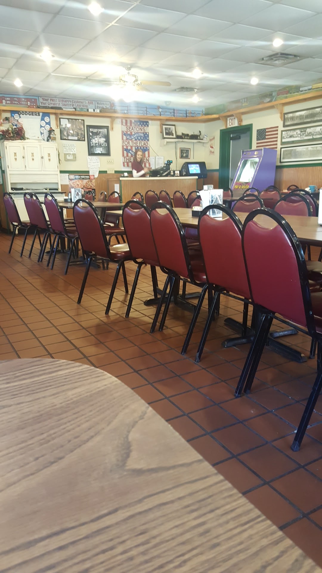 Good thing it's a small town. Drink refills none. Even had to hit the wait station myself to get silverware. Pizza flat plain no flavor even though it had everything. Spent $38.