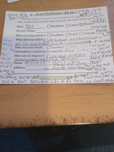 Read moreETA: Breakfast the following a.m. was comped. The service was great, and she was very attentive with a full dining room of customers. The breakfast meals here are always delicious and consistent. We come here more than 3 times a year for celebrations staying. The food has gone downhill. December, it was comped, and we never ask for that at any restaurant. Tonight on my kids 16 bday, food bland, horrible, onion soup, club sandwich, no ketchup when asked, waited 45 min sitting, no how was your food, cold flatbread, cool cheese sticks, asked extra mozzarella sauce no given. Filled my h20 up once. Unimaginably unreal $43.00 and change for that. We haven't eaten all day, and we're starving. Never HAD TO ACTUALLY WROTE A REWIEW LIKE THIS....