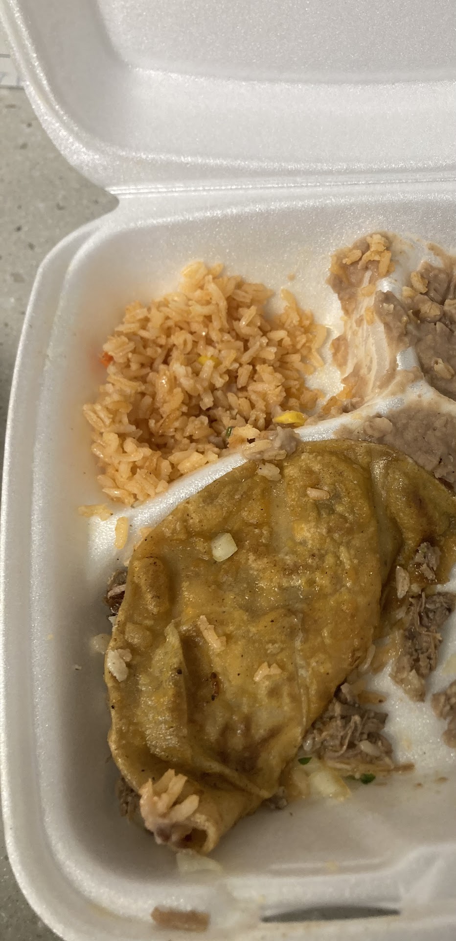 Read moreBad, just bad. Upon entering the restaurant during non-peak hours we were seated by a waitress who quickly ushered us in and then rushed us to place our orders after we said we needed a few minutes to look over the menu. I ordered Arroz con Pollo which was described as marinated chicken over rice with queso. What I was served can only be described as boiled half cooked chicken. It was so hard to chew that I had to send the food back, which I never do and ordered a quesadilla. The waitress overall was extremely rude and we could tell portions of our meals were microwaved, especially the queso. Halfway through our meal we noticed the photo above our table had an uncomfortable amount of dust and even a cobweb on it (see picture) which made us uncomfortable and some had gotten into our food. Overall, bad very bad. I really hope we caught them...