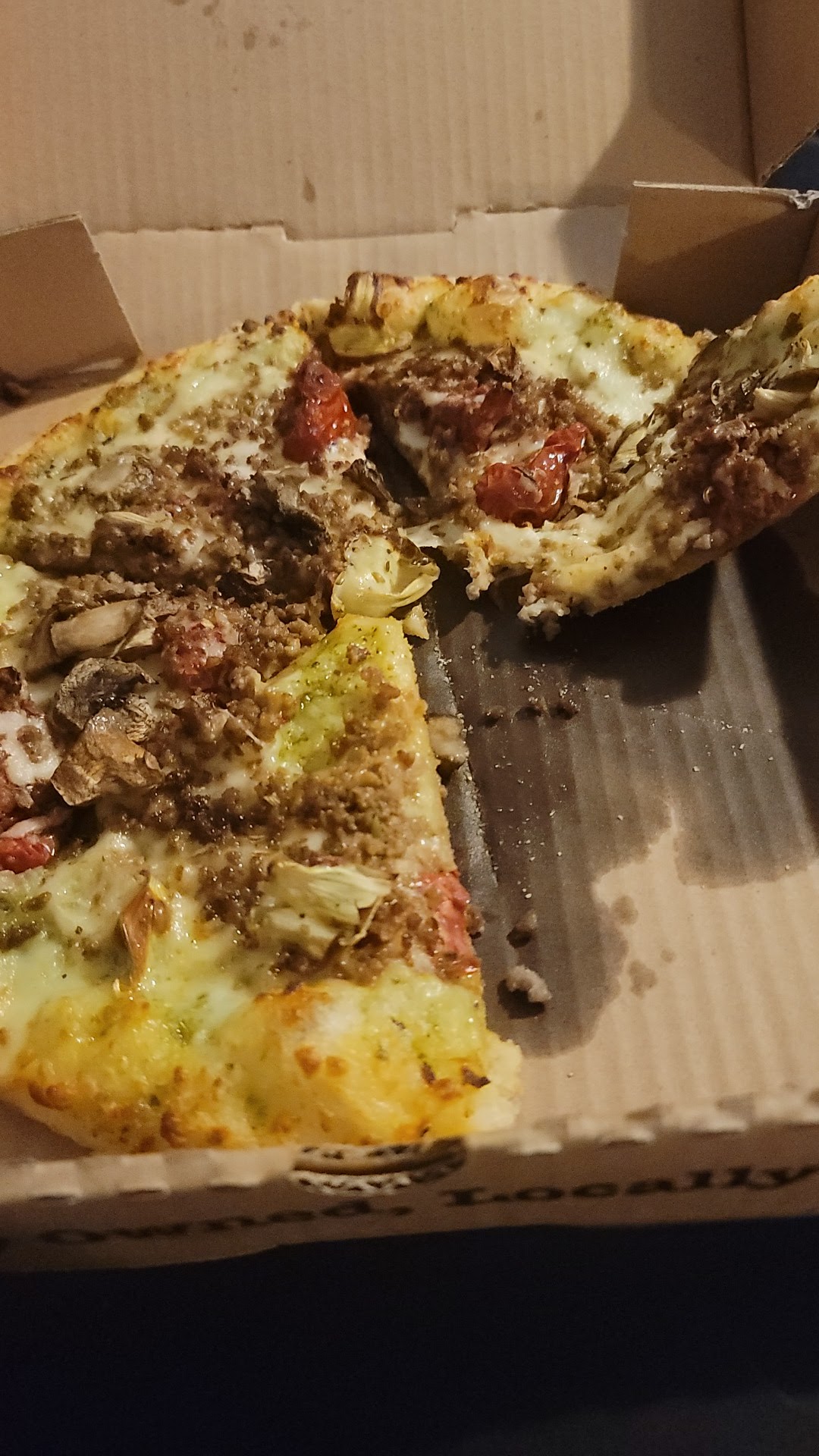 Read moreI haven't had Hot Box in years, partly due to there being no location in my hometown of Greenwood, but I moved up to Muncie in September and we just now got Hot Box pizza and I have to say thank you! I love pizza, but since I had my surgery and have restrictive dietary demands I haven't been able to eat pizza much. I got the Hippie crust, since I was told whole grain would be better and I was shocked when it still tasted really good, had a great texture and overall the whole pizza, breadsticks and all hasn't upset my stomach. It's also really cool you get a reusable cup if you get a drink to go with delivery and all of the crust seems to be vegan. I love it. Also delivery was early ! I'm a patient person and I don't ever mind waiting, but it was a really nice surprise to have pizza earlier than expected. Driver was super nice and the person that spoke to my boyfriend about their dietary friendly options yesterday when he said I was nervous to try to eat pizza again was so nice. Thank you all and I appreciate you. I hope you all enjoy...