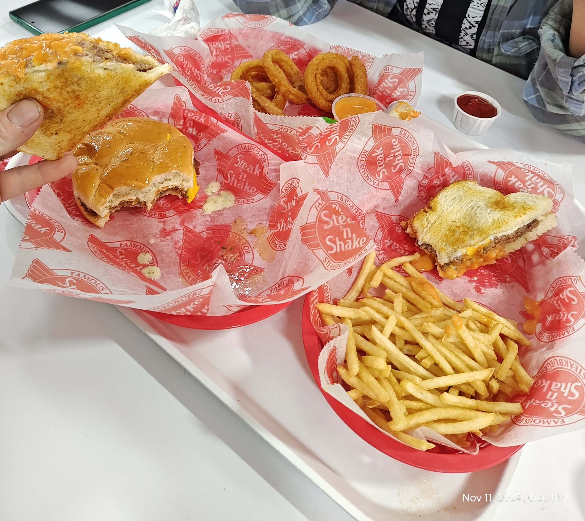 Read moreAs a restaurant manager, i HATE leaving bad reviews. I knew the Colts game was tonight and steak n shake might be a bit busy, so with that in consideration, I was prepared to wait A LITTLE. Nope, I pulled into the drive thru at 830 pm. It was 920 pm when i finally had my order taken. If my family's hearts werent set on steak n shake I would have left like the many others in line did. While waiting many employees were running out to smoke. (I understand) However, they were very loudly complaining about their jobs and how people need to eat at home. (Unprofessional). As I finally reach the window I have to wait another 10 mins for the manager to fix my order because the girl messed up. (Again, I understand). Then, a gal hands me my order BEFORE the drinks. Clearly didnt check it because I was missing the fries. Irritated because it was then 945 pm and I had just wasted OVER AN HOUR of my time, I am home and our food is cold, the milkshakes are completely melted, and my salad is missing dressing. Havent checked the toppings on our sandwiches yet, but i assume thats probably incorrect too. We are very disappointed!! P.S. You know it's extra bad when you cant even get a reciept for your meal because the store doesn't want bad...