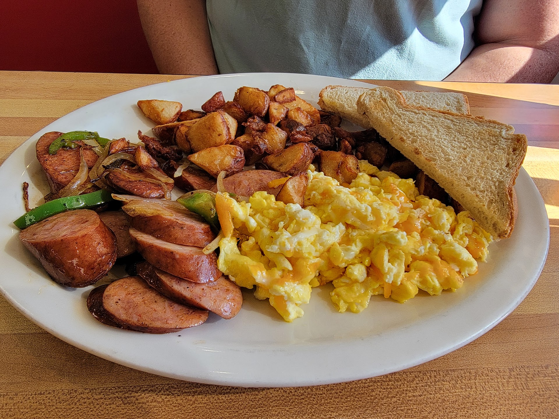 please never eat here. i came here with my family and i ordered food, FIRST OF ALL we were the only family of color who ate here and everybody was seated and tended to before us, we waited over 10 minutes at a table- when we finally just seated ourselves- and when we finally were “served” our meals arrived lukewarm as if they had been sitting for several minutes before even noticed or brought to us. I ordered Fiesta Nachos and the Vegetable Omelet, the nachos arrived lukewarm w/ the cheese congealed on top, none of the advertised toppings and the chips were SOGGY that’s how long they took to bring the food literally. I NEVER received my omelet. My mother found a short and curly black hair on her food…. her hair is gray and straight. For sake of reading, I’ll wrap this up but it was so much more that happened. Please don’t eat here if you value service, quality food, and your hard...