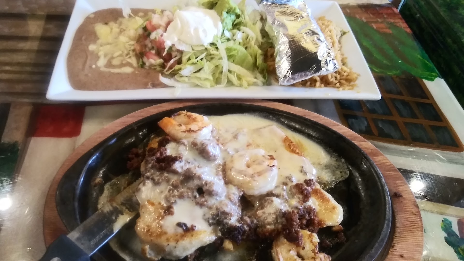 I was in town visiting with some friends and suggested a Mexican place. This is where they took me and it was very excellente! They were very busy so service was a bit slow but I wasn't in a hurry. I had the Texas Margaritas that were pretty darn good, and I lived in Texas for 20 years, and spend every winter in Mexico since retirement, so I know a thing or two about margaritas. About margaritas. The food was good too. I didn't get the usual Tex-Mex stuff but something off their special menu that had shrimp and vegetables with cheese and was very good. They're refried beans were tasty as well, although not as much as I would have liked. The Mexican rice that came with. It was well seasoned and cooked well, although a little on the cool side on the plate. By the time it came out. I got the flan to go, and it was most excellent. It had a nice caramel sauce which unfortunately leaked out from the container it was in but that was my fault for not paying attention to its orientation. Fortunately it stayed in the bag and didn't damage me or my car and that meant less calories in my belly which was fine with me. If I ever get in that end of the world again I would probably want to go back. I wish I remembered the waiter's name that we had but he was a good hombre, and all the way to staff there seem pretty cool. The woman at the Pay counter was a little withdrawn but she looked busy. I wish I had taken pictures but after The second margarita I forgot...
