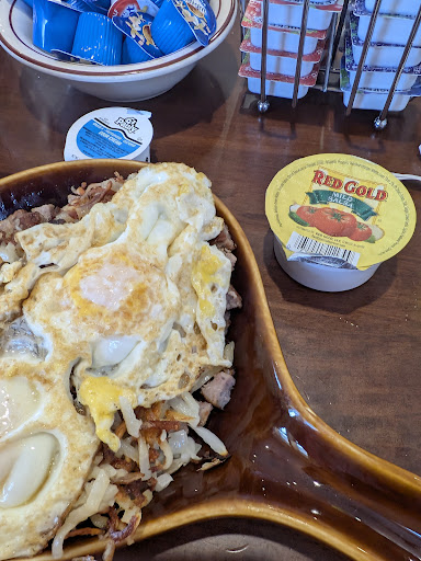 Read moreWe were excited to try the food here. Walked in and it was a really cute place. The menu items sounded delicious. There is a sign that says to wait to be seated. So we waited. And waited and waited. No one even acknowledged we were there despite walking past us multiple times. A big group left and it took the busser about 10 minutes to just remove the stuff from the table. We finally asked if we could just seat ourselves there, I wiped it off myself. We got someone over to order and were told right away that they were out of multiple items so we had to choose something else. We ordered a skillet (yooper on a hot tin roof) without the ingredients they were out of, I ordered the cinnamon French toast because they were out of buiscuits and gravy, and we ordered the kids scrambled eggs with cheese and a pancake to share. They brought out the skillet and half the ingredients were in prepackaged cups. The taste was way off and it was barely warm. The French toast wasn't even toast. It was soggy bread with loads of cinnamon. The inside was somehow raw and mushy. The kids scrambled eggs were burned on the bottom and couldn't even cut through, the pancake was also raw in the middle and very mushy. My kids ate the cheese off the eggs and that was it. We ended up leaving without eating but a few bites. We went to the gas station after and got my kids a soft pretzel and they both told me how amazing it was. Unfortunately, I can't recommend this place. The service is lacking and the food is neither fresh nor...