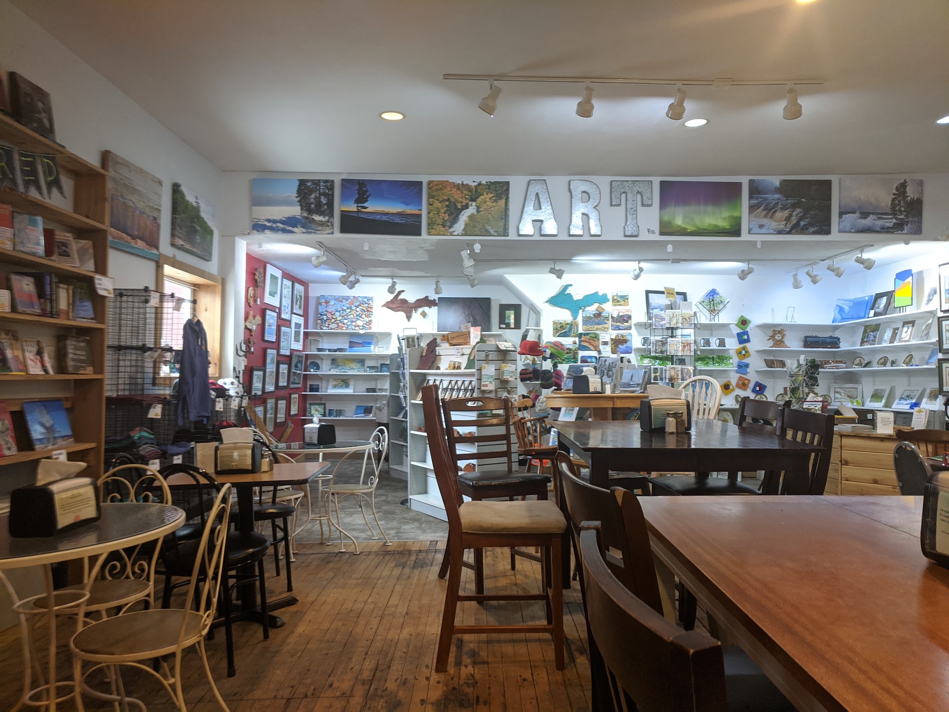 Read moreWe've been coming to the Falling Rock for years - long before building a cabin at Au Train. In the old days, when we were tenting, it saved many a rainy day for us. Now my brother plays with the Falling Rock Jammers on Monday and Wednesday nights (great music - especially Wed, when the full group is there) and they feature local and regional artists on Saturday nights. There are games, books, and tables of varying sizes and shapes to sit and browse the web on their free WiFi. They require no minimum purchase to make use of all these things, but I certainly hope that those who DO use it, DO purchase a meal so that it never has to close down. Nicest people anywhere. Great breakfasts and sandwiches. Good ice cream. My one complaint is their coffee drinks. I ordered a 'blended ice' drink and it was a coffee beverage with small chunks of ice .... not really cold and certainly not well blended. If they could get a full range of beverages that would rival Starbucks or Caribou, I'd be stopping every day instead of...