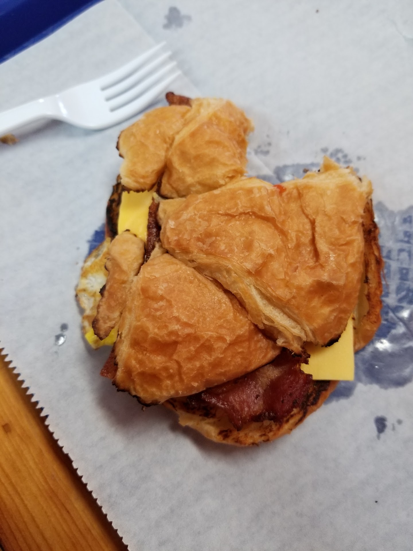 The food came out about 10-12 minutes later. It was good, but nothing special and they clearly don't care about presentation. Just a breakfast sandwich slapped on some wax paper that was on a diner tray. The donuts were really good. We had a jelly filled, maple bacon (really good) and a cononut.
