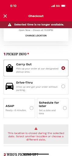 The restaurant was beautiful. Very clean with nice furnishings. Probably a couple of years old. But it looked great. And the employees were nice. As for the food, My husband enjoyed his roast beef sandwich, But not the curly fries. He also ordered an apple turn over. When he bit into the turnover it was cherry. But thankfully he likes cherry. The paper was stuck to the topping. And that was a little bit irritating to him , but otherwise he enjoyed it. I bit into my chicken wrap and it was very tough. You could barely tear the rap with your fingers. So I opened it up and ended up just eating the chicken inside which was tasty. My crubkle fries we're really good my husband enjoy eating those too. The cookie was a very dry and flavorless. It cost about two dollars. It was about four hundred and fifty calories. Which I spat out the bite that I took. My husband had a bite of it and he did not like it either. the cookie bag had an expiration of october twenty twenty four. Just overall an overpriced, very dry flavourless cookie.