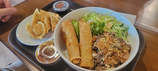 On to the food: A for Effort. I had the Pho: The broth is lacking Coriander, Anis star and other very important spices. And for that lack, the broth was "beefy". On top of that, it was cloudy and too sweet. This is far from a good authentic North Vietnamese Pho. The meats were no proper cut and also smelled "beefy". The meat balls were the wrong meatballs. My wife had the Eggroll Vermicelli Salad: Why did you cut the vermicelli in small chunks?? Again, wrong herbs and ingredients to use: here are some that are used in authentic Vermicelli salad which weren't there: Vietnamese Coriander, mint, pickled carrot/Papaya. The "dipping sauce" (Nước mam chấm) for the salad was not it either. Far from it. Please search Google and you'll get a little close to authentic.