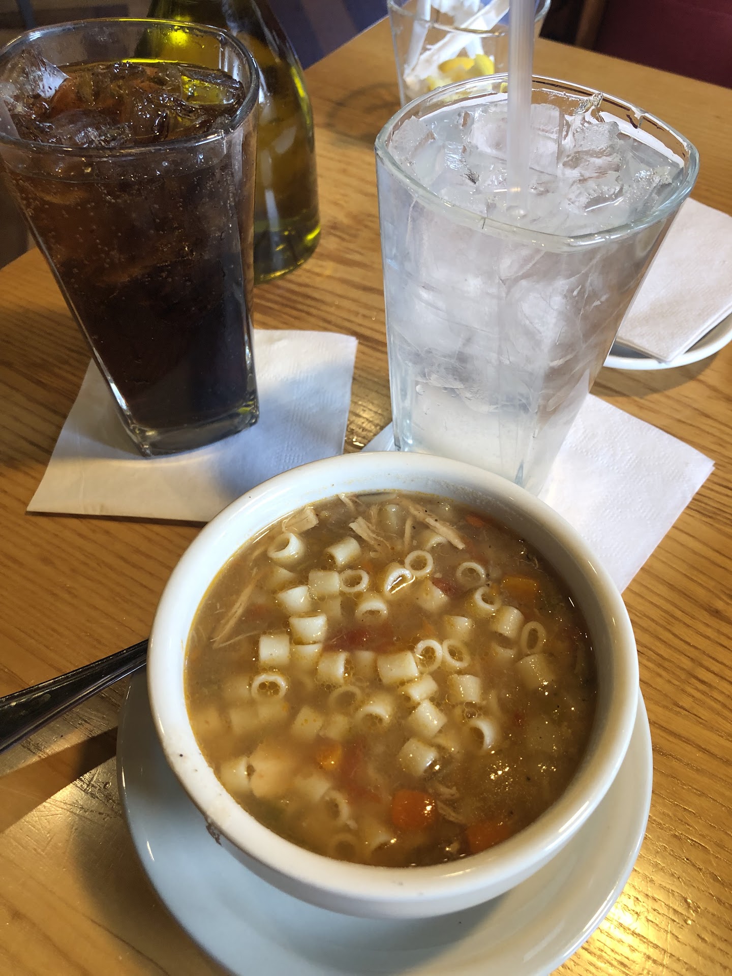 Now to the food. The app was good, nothing bad to say. When our salad/soup came is when things with the food turned south. My soup was cool enough where I could stick my pinky in it without having to remove it. My wife’s salad was sooo over dressed she was shaking off dressing at each bite. The entrees arrived about 15-20 minutes after we had finished our soup/salad course. My wife’s pasta was bland, next to no salt. While she changed a sauce that normally came with the dish, it still completely lacked in flavor. My chicken Parmesan was just “off” I couldn’t tell exactly what it was but it had a very different flavor. I opted to add fett Alfredo to my dish. 100% it had been made, sat to long in the window, then thrown into the microwave to heat back up. I know this for two reasons, one Being the curdled cream and dry pasta, the other would be visibly watching the cook nuke it. Again I’m a chef so we were watching the kitchen, because it was so dead in the restaurant. NO MANAGER EVER CAME BY. Our sever asked us one time, after 1 bite of our entrees how the food was. We told her “ehh” and she said “well y’all enjoy”. The manger was a long curly haired man who seemed more interested being friends with the severs than managing this restaurant. Everything all night long took 10x longer than it should. For example, my wife ordered another glass of wine when the entrees hit the table, she received her glass when we were done eating.