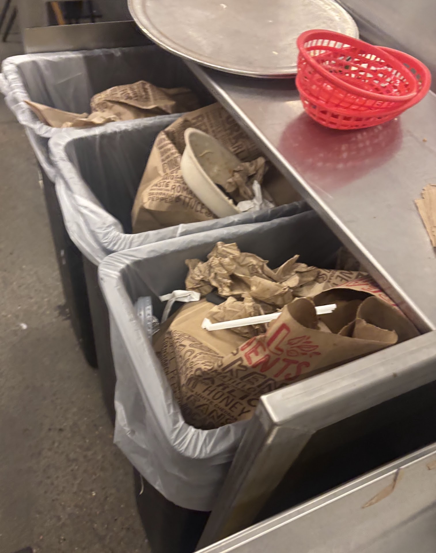 This Chipotle was SO dirty. I didn’t take hardly any photos because there were people around me. The work station was filthy, the food was everywhere, the trash was overflowing, the tables were gross, the napkins were out and the workers looked MISERABLE. The kitchen was indescribably nasty. One kid worker knew one of the customers and yells out to the register guy to give him his employee discount (do that discreetly, don’t shout it infront of everyone). I was seriously shocked at the filth of this restaurant and should have just taken the photos. The couple that I took do it ZERO justice. The food tasted fine, but the dirtiness was such a turn off. Honestly, I wish the health department had stopped by to see it, it was THAT bad. I will not ever go back to that location. I am not a chipotle person (DOS BROS IS SO MUCH BETTER, CLEANER AND HAS FRESHER FOOD!) but I had a sick child who wanted Chipotle. Also $28 for two bowls and a regular side of chips and queso is pretty steep, but Chipotle does give way larger portions than DosBros. All in all, avoid this location at all cost. I would have walked back out if it weren’t for my sick child wanting this.