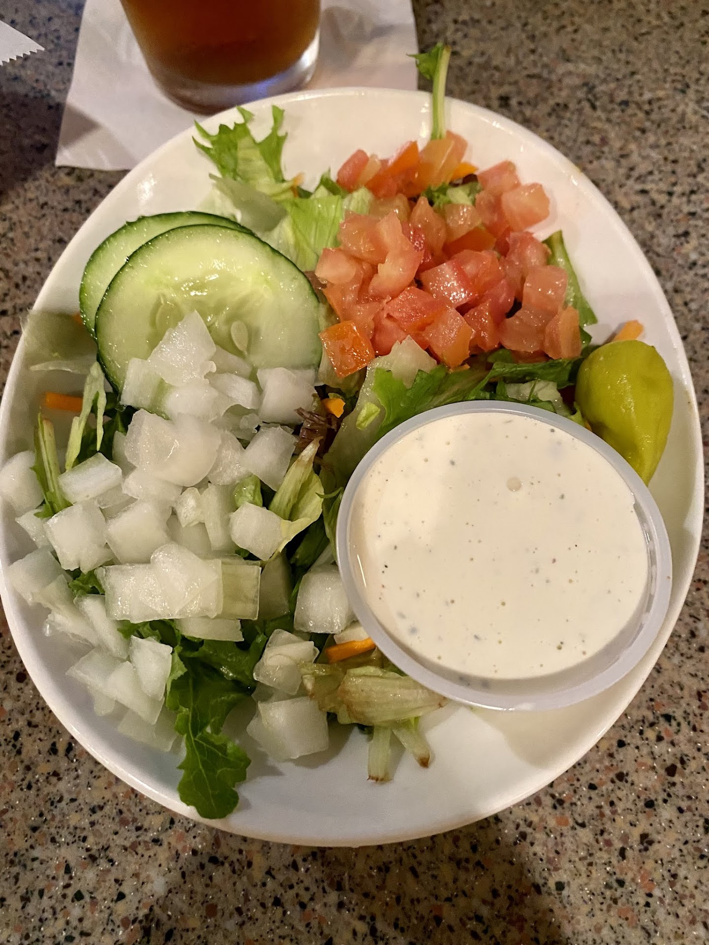The food is just boring, lackluster, overly salted at best. Each time I go, I try to get something else that maybe will be the thing I can get every time someone wants to go. I have yet to find that thing. Today I finally decided that it's probably just not going to happen. I've had the pastas, the salads, the steak, and even a sandwich and a burger many years ago. I almost ordered a salad with chicken or steak today, but then I remembered the time I ordered a steak and it was so salty I couldn't finish it. That day many years ago, they brought me a second one and it was also incredibly salty, so I didn't say anything again. Today I chose the baked potato and a salad, hoping this would be simple enough. I ordered a loaded baked potato and a salad with Italian dressing. Imagine my surprise when I get a boring salad (complete with chunk of salad core) with the whitest Italian dressing I've ever seen in my life and a plain baked potato with barely any butter or sour cream and a little cup of cheese. That's right! A loaded baked potato comes with just butter, sour cream, and cheese. Definitely not loaded. Hilariously, the server and food runner agreed that it's not really loaded. Additionally, I don't understand how they have all of those sandwiches and no french fries. My partner was incredibly disappointed by the hash browns or baked potato option. He also ordered a baked potato and tried to take mine because neither of us believed mine was actually loaded.