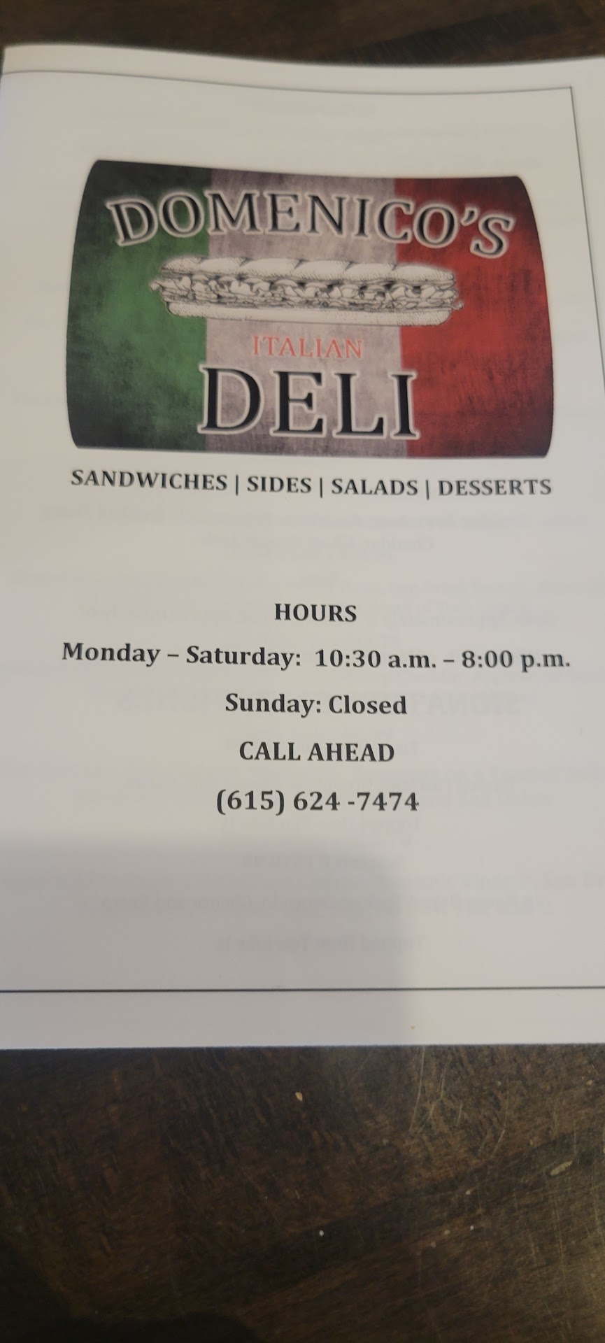 Jan 31, 2020: Visited the newly opened Domenico's Italian Deli with my daughter…looks to be an extremely welcome addition to the Murfreesboro Square. Arrived at 11:30am and the lunch crowd along with the curious had the line 15 deep, and a steady stream coming and going. Even with the long lines, the wait was not bad…maybe 10-15 minutes to get the order placed and about 10 minutes to get the order. The setup is your standard sandwich shop but with a few nice twists I really like. You can order different size sides, versus one size fits all and the deli case offers meat by the pound if you really love what you order. Went with the Meatball Sub with hand rolled meatballs on a roll with marinara sauce…added provolone and parmesan cheese to this one. The Italian Combo has dry salami, capicola, ham, mortadella, bologna, and provolone cheese…added the standards plus oil & vinegar. Also grabbed a couple of sides…the Pasta Roma and Pasta Feta salads plus a couple of the homemade cannoli’s.