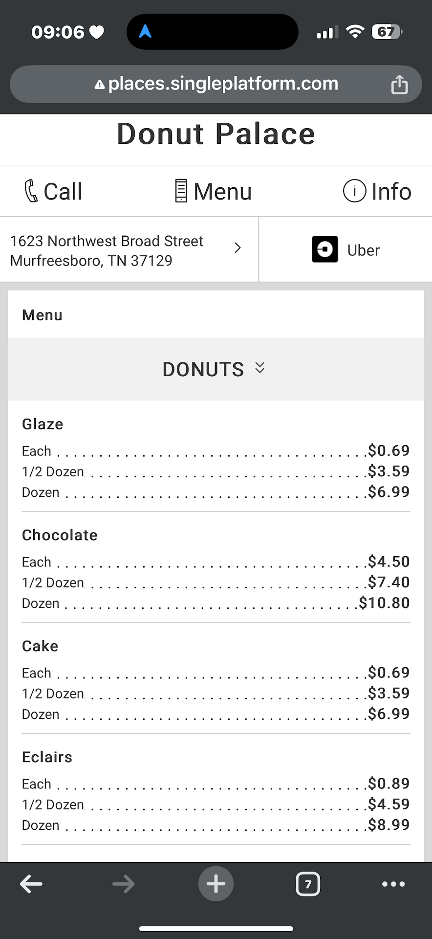 This little gem of a donut shop is tucked away between Subway & Acrylic Nails, but the taste absolutely can’t be hidden! I don’t live in Murfreesboro but this place I’ll drive an hour too because the quality of their donuts. They are soft, most and delicious and definitely something that everyone should try. My only obstacles and issues are that I believe folks should be aware of that could be problematic to some if not known. The parking lot is a challenge since they are in super small complex of shops many times parking is very limited and literally unavailable! Additionally, their restrooms have been out of order for quite sometime. They have a $5.00 minimum purchase should you want to enjoy the convenience of using credit or debit cards - again FYI only! Their website indicates that they offer delivery services through Uber Eats so that’s no longer possible. I’d recommend this establishment partnering with Uber Eats, Door Dash or Grub Hub it would only enhance their customer service base & expound customer satisfaction! Additionally, since it is around the holidays you should know and consider they close for along periods with the holidays! Overall, best donuts in the...