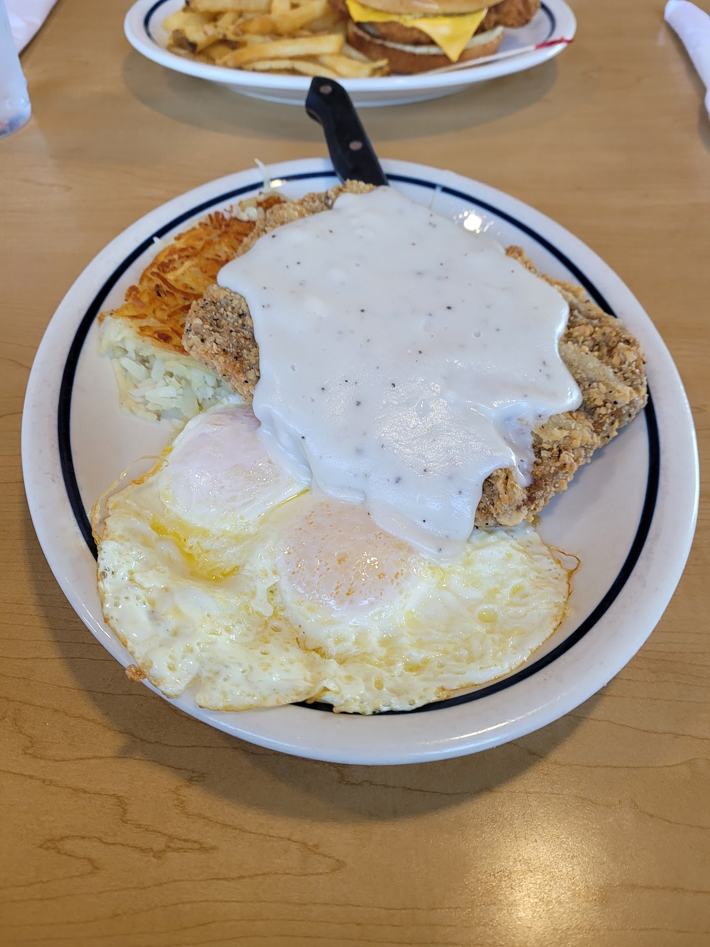 Read moreFood was awesome, that's about it. Host completely skipped my wife several times, not people being paged either completely skipped her in line. Thankfully Karol on to gos helped us get a table. Then the host had a complete attitude issue with her fellow coworkers and customers. It was mother's day so I understand it's stressful and busy but was still unprofessional. The table was hardly wiped off, underneath was not swept prior to us or hardly at all and felt incredibly greasy, it marked up my shoes pretty good. Waited almost 5 minutes or more just to be greeted by our server, and she was clearly disinterested in helping us. Orange juice was warm and tasted horribly acidic, you could taste the lack of cleaning in whatever container it's kept in definitely don't get the OJ Server didn't pick up dishes as they emptied and never came around to give any refills. We could see the server (who only had 2 tables) leaning and talking while our cups were empty. Even the manager wasn't greeting customers or checking on tables, he was just leaning and chatting. You could tell most of the issues problems come from the top down. We've worked in restaurants majority of our adult life and it was clear there was a lack of concern or care. They seemed to just want to get through rush, even on a day where it should be expected to be busy (mother's day) Probably...