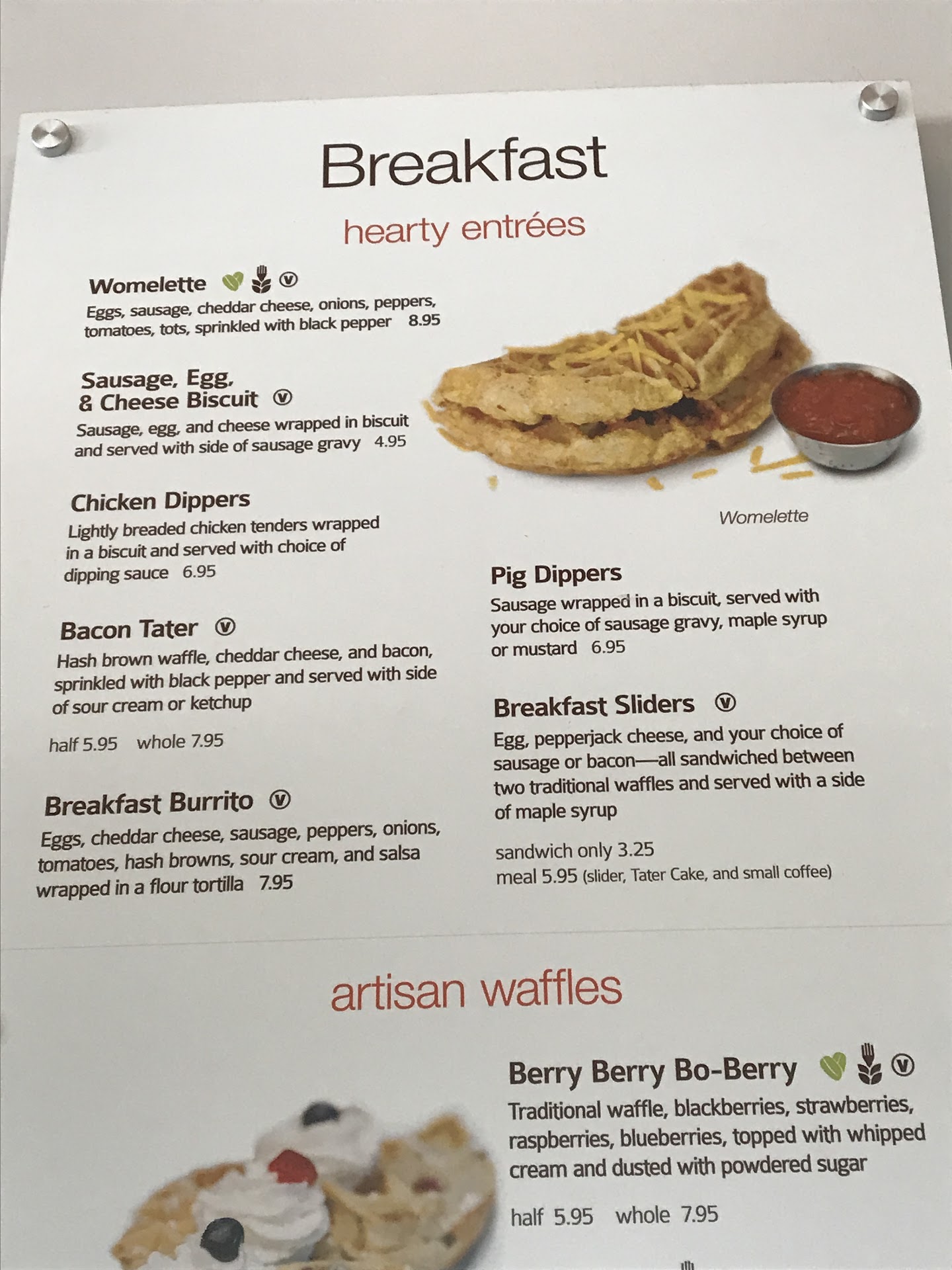 Read moreUsually a pleasant experience where we order our “usual”. But this morning, goodness. First, the rude cashier tells me that you don’t sell half orders of Bacon Taters. As seen in the picture below, it’s still on your menu hanging in your restaurant. The very menu that people look at to order. So 🤷♀️. Put a piece of tape over it. Come on. Secondly, I ordered a grilled cheese with bacon. Received it without bacon. Told the same rude cashier who responded “I’ll tell the kitchen”. Ten minutes pass and nothing. So 🤷♀️ and we ate a cold grilled cheese. Boyfriend goes and gets his latte and the barista essentially yells at him and says “That’s not yours” to the coffee mug he was grabbing for. Apparently his latte was in the to go cup even though we stated we were eating inside. So 🤷♀️. And finally, he wanted to buy K cups with our food order, but the rude cashier never charged him so we had to go back up to the counter and make sure he rang them up. Good thing we are honest folks.