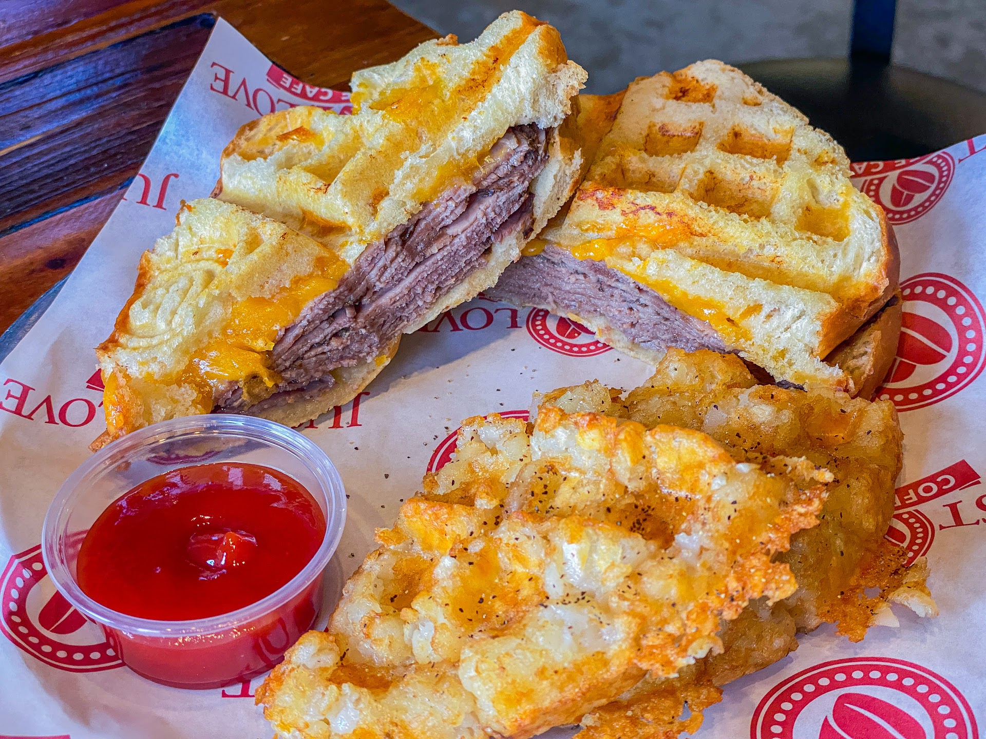 Then, some of the food was disappointing. The waffles and potato tot waffles were delicious as usual. But beware the breakfast burrito. I know I know... why get a burrito at a waffle place... yet I did. All ingredients were straight from a can, including the wrapping, which was microwaved into cement. I wished I had gotten a waffle.