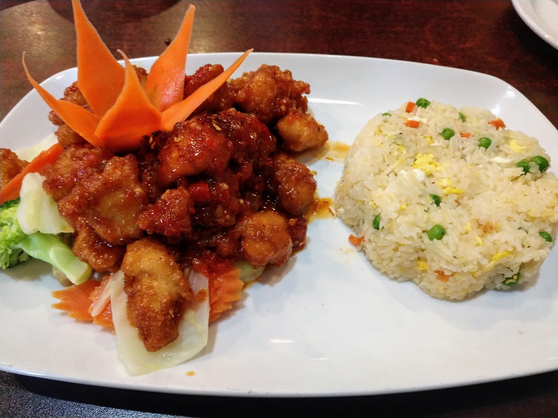 Cons: The food. Although Lemongrass is known for their aesthetic dishes, I'd rather take a delicious dish over a pretty one. I ordered the Volcano Chicken with level 3 spice and a side of fried rice. Miso soup and vegetable roll not pictured. The chicken was fried, but the batter became very soggy (not moist, soggy and falling off the meat) after the addition of the sauce. It made for a gooey chicken. The "spices" were just spooned and plopped on top of the pile of chicken. The fried rice was very salty (I LOVE salty food, but it was a bit much). I've had this dish before 2 years ago at this same restauant, and I remember raving about it. Perhaps today was an off day. My friend's sushi looked absolutely amazing though. I recommend that if you go.
