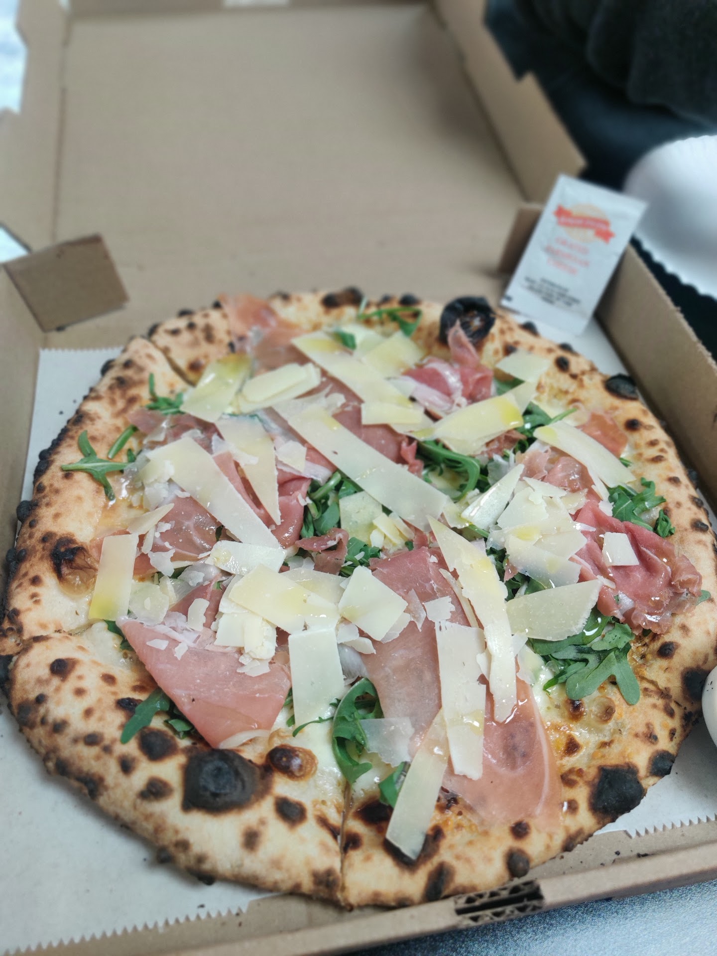 Read moreI know this is a new business so we wanted to support. We decided to get the white pizza (canât remember the name but started with an r). First we asked if they could add pineapple and they said they were out. Disappointed but went ahead with order. We expected saucy white Alfredo sauce. Thatâs what I have always gotten on white pizza. This was truly the worst pizza we have ever had. We both agreed. So dry. No sauce. Like eating cardboard. I didnât eat more than one bite. My boyfriend ate a couple of pieces but had to add hot sauce and ranch at our house to make it edible. We also got a Caesar salad. That was decent. The salad had the dressing on side so we mixed when we got home. I donât think we will be back. I hope they add some sauce to their pizzas. It was that bad. đ