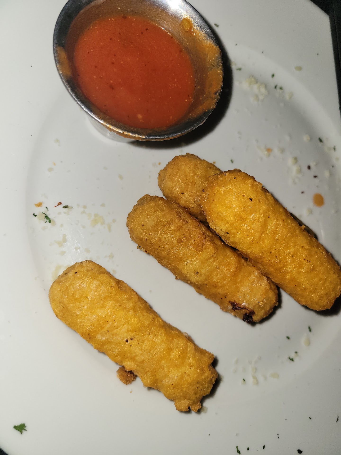 We ordered the cheese sticks as an app, and they were definitely premade frozen ones you could pick up at the store. Far too uniform, and the inside was like mozzarella sticks you can buy in the grocery store. They didn’t taste like anything, and the “fresh” marinara tasted more like it was Hunts than Milano’s.