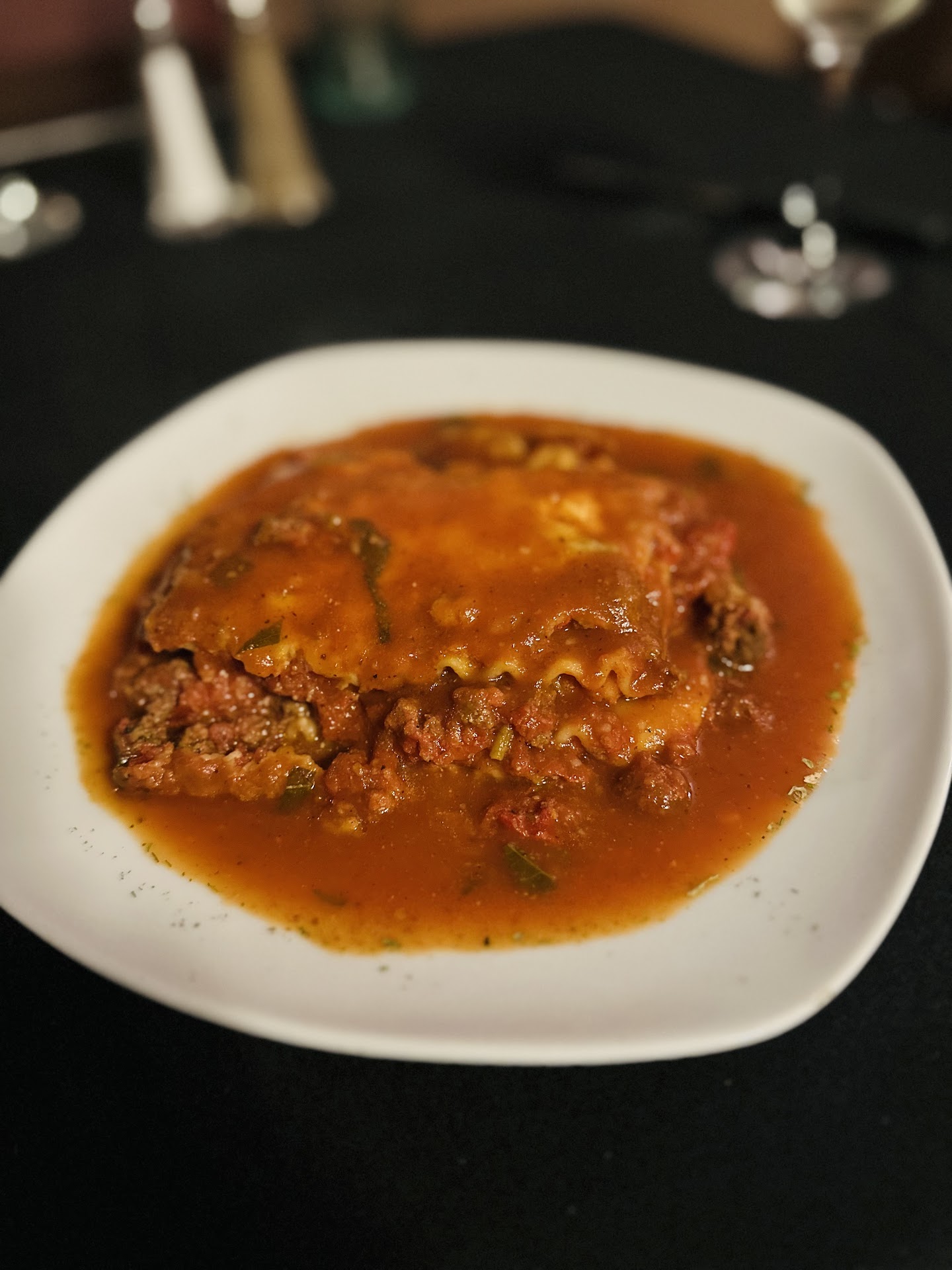 We didn’t budge, and his attitude only soured further. When we got our lasagna, they didn’t bother to half it. They just gave us a square of it in a sea of marina that nearly ran into the edges of the plate, and I got a clean one to portion it out. Overall, the lasagna was soggy and rather bland, and was definitely not worth the amount charged on the menu, which is $12.
