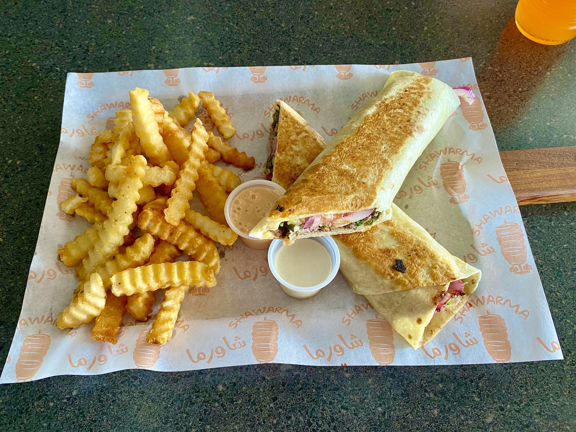 Visited for a late lunch today and decided to try the “NEW” item on the menu board…the Meat Shawerma (I did beef, there is a chicken option too). I had a chance to talk with Kyle about the sandwich and he explained how it is a very popular dish and I can see why. The flavors were wonderful, the veggies were crisp, the beef tender, and the pomegranate molasses added an interesting dimension to the sandwich. I’ve never tasted this before but it adds an intense sweet-and-sour flavor, somewhat like a balsamic. There were sauces to dip in (Tahini and “Pink”) but this sandwich was exceptional on its own and needed no help. Loved the grilled wrapper, added a nice texture and crunch to the sandwich. French fries came with the meal and they were really good, crispy, with a nice clean flavor…a solid addition to the meal. I really enjoyed this sandwich, and it’s a lot of GOOD food for the price. I will be going back to try some of the other dishes along with the chicken version of the Shawerma. Service was great and Kyle is a pleasure to talk with. You can see and hear the passion he has for serving up authentic and delicious Middle Eastern foods with a touch of...