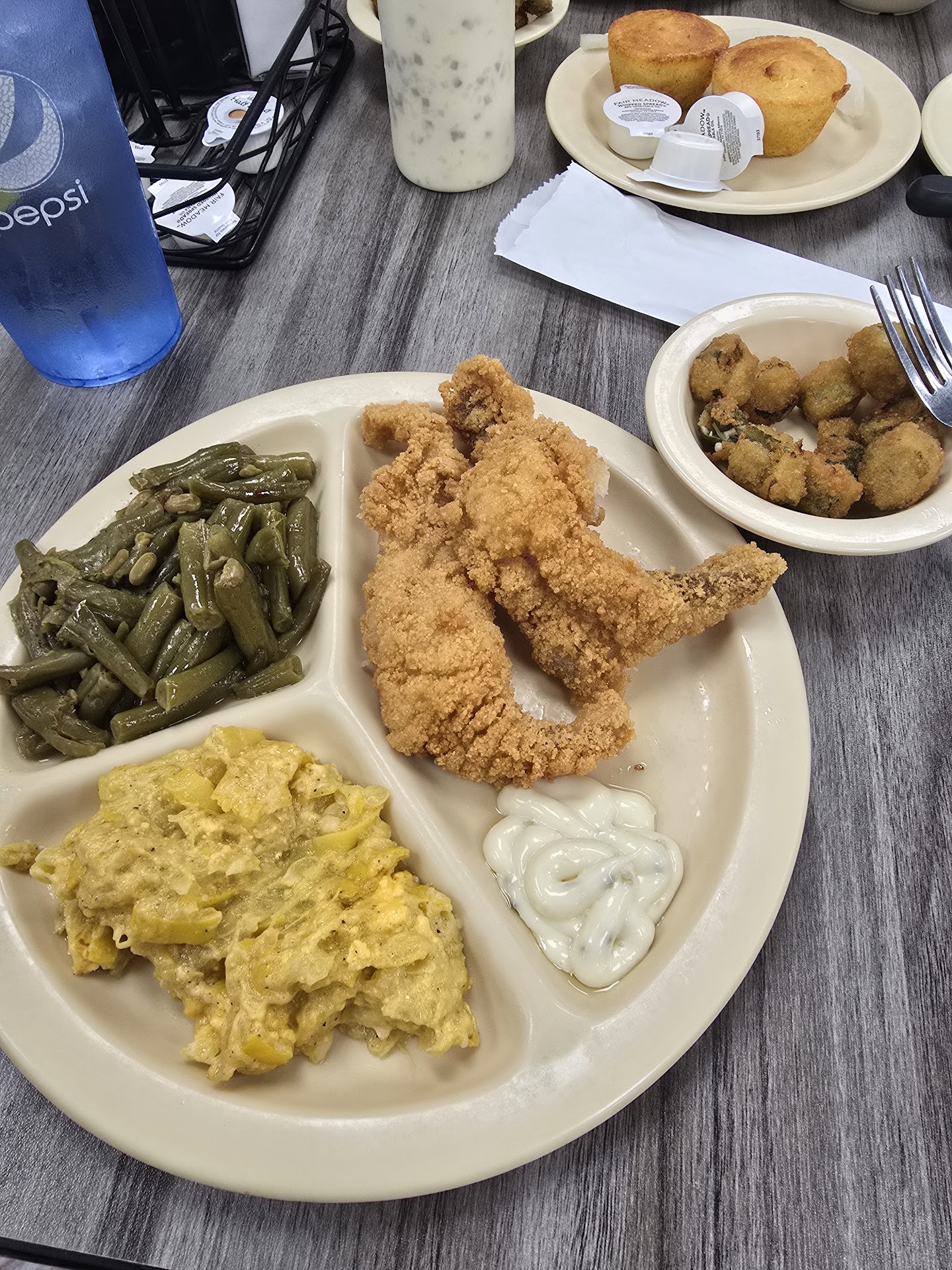 My fried okra was decent and my husband said his Country Fried Steak was "good", anything over "ok" in his book is close to excellent.