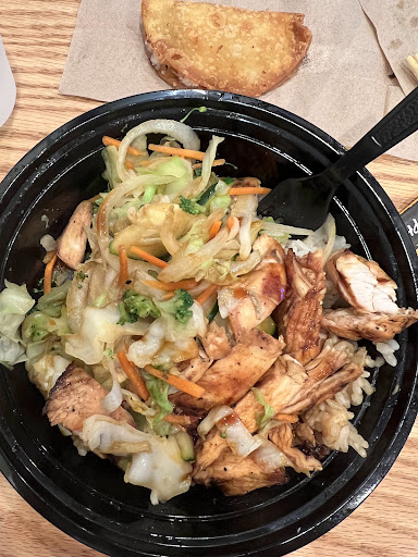 The bowl is generous in what it think is the typical steamed commercial rice. It was neither dry, chewy or overly clumpy. The chicken was tasty but I didn't think it was "spicy" at all. And there was just enough broccoli and cabbage to make the presentation great.
