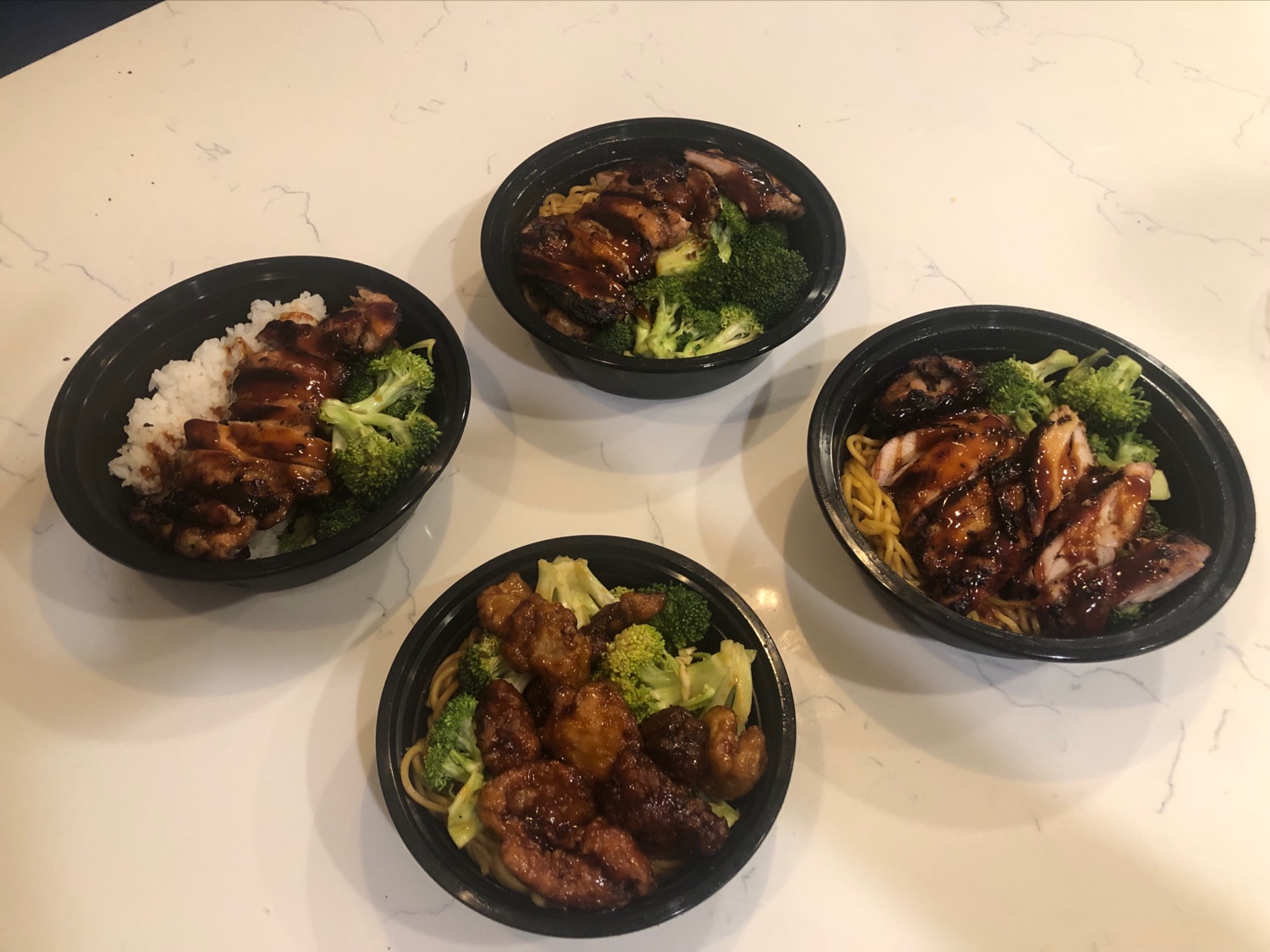 For our most recent order, it was not very busy and it was not ready on time. We were told it would be 15-20 minutes longer, which it was, and the staff again didn't have a great attitude. After getting home the chicken tasted off, and the noodles were hard like they hadn't been cooked all the way or were day-old.