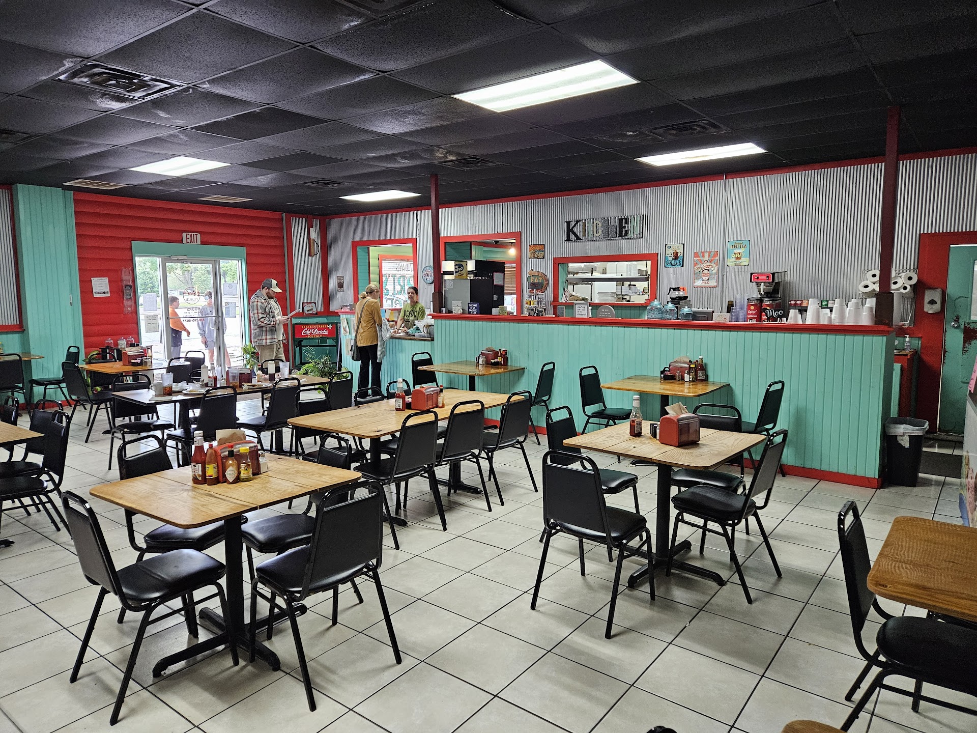 The regulars all know each other, and everyone cuts up in a friendly way. The coffee was always hot, and so was the food. More parking exists in the back if you're worried about your doors/dents. Also, the diner is right off the town square, so get there early if you're looking to park at the front door (that's how it is in a small town).