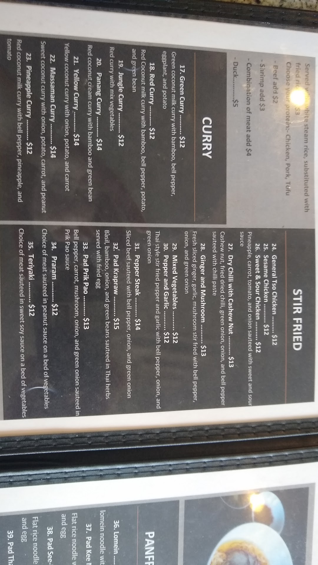 Ā Ā Ā Read moreThis is hands down the best Thai food and possibly the best food Iāve ever eaten. The owner is so kind and friendly. I have been eating here for probably a decade and as often as possible. For a while I had to quit going because they hired someone who was really rude to me but she eventually either got fired or moved on and I couldnāt resist coming back because mostly everyone is friendly and the food is irresistibly delicious. I probably should have told them how she treated me but I never did. She would scream at me, throw things, snatch things off the table and be blatantly disrespectful in front of other people. I just felt too awkward telling them about it because I didnāt know how well they knew her. Itās sad because I missed out on the best food for a couple of years but now Iām back making up for lost time š šš Their curry is the best in town! Not only do I recommend this place, I actually thought about applying here part time in case they had an...